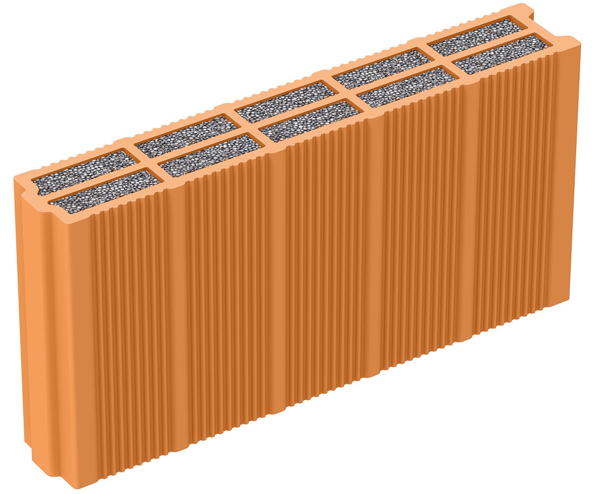 Tramezza in laterizio porizzato con una foratura superiore al 60%, in cui tutti i fori sono saturati con polistirene additivato di grafite Neopor® di BASF. Una soluzione innovativa e performante dal punto di vista dell’isolamento termico.
