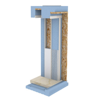 È compatto e regolare con spalla di spessore 100 mm o 70 mm, a garanzia del più efficace taglio termico tra muro e infisso. Viene assiemato con appositi collanti e fissato tramite un sistema di staffe e rinforzi, che lo rende stabile e non soggetto a deformazioni. È adatto ad ospitare qualunque tipo di sistema oscurante e dotato di un sistema di zanche scorrevoli per l’ancoraggio alla muratura, regolabile in base allo spessore del cappotto o intonaco