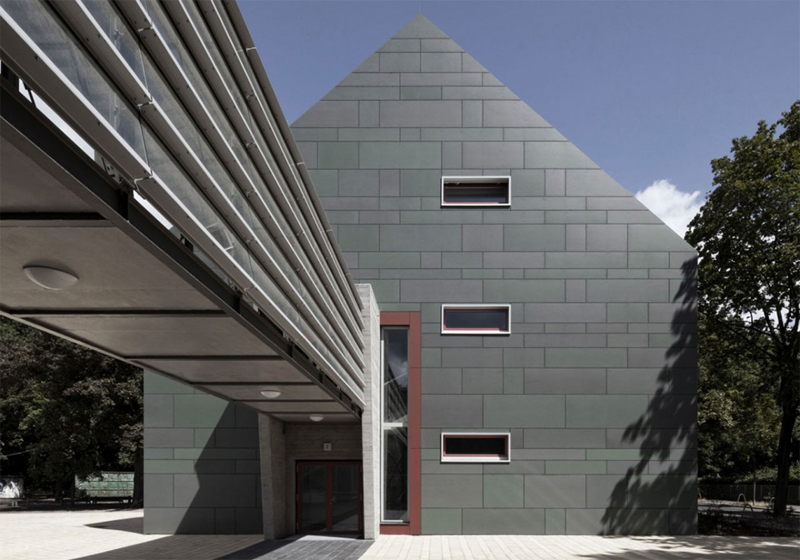Flessibilità e apertura verso l’esterno, questi sono stati i due cardini che hanno guidato la progettazione dell’edificio. Nasce così un’architettura aperta e moderna che alterna grandi vetrate a tamponamenti in lastre di fibrocemento.