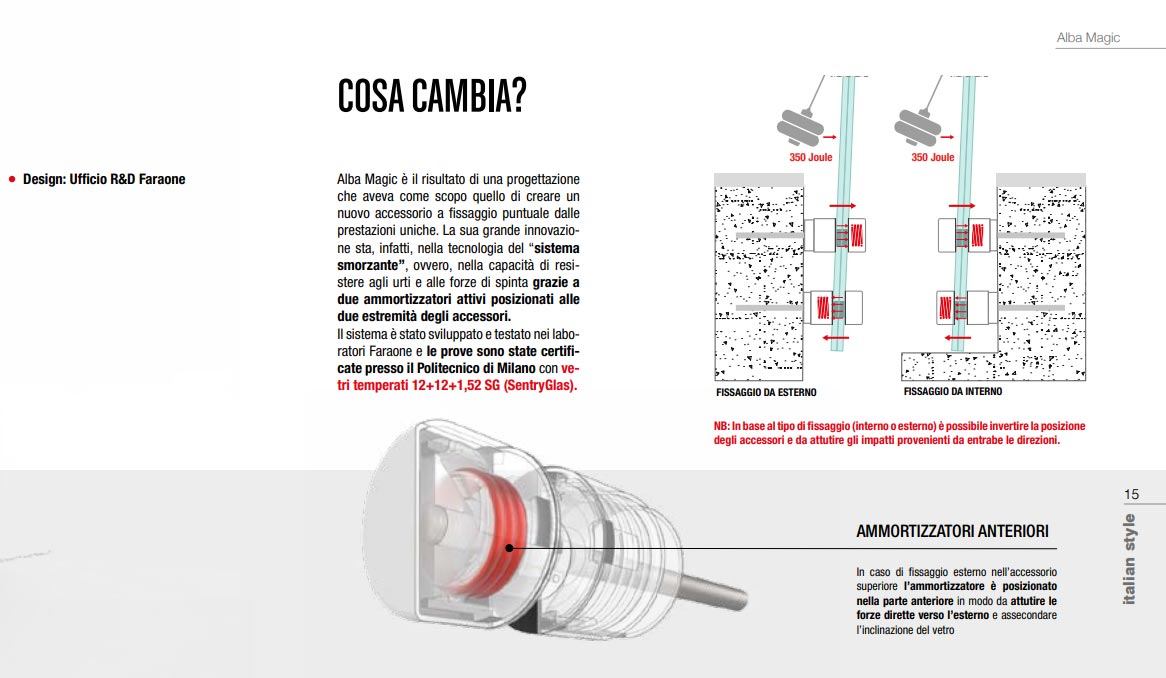 Tra le prime in Italia a sposare l’innovativa tecnologia del fissaggio puntuale del vetro, laFaraone cresce anno dopo anno, riuscendo ad individuare tempestivamente le tendenzee le esigenze dell’architettura del momento, per focalizzare al meglio la propria gamma diprodotti di Design.