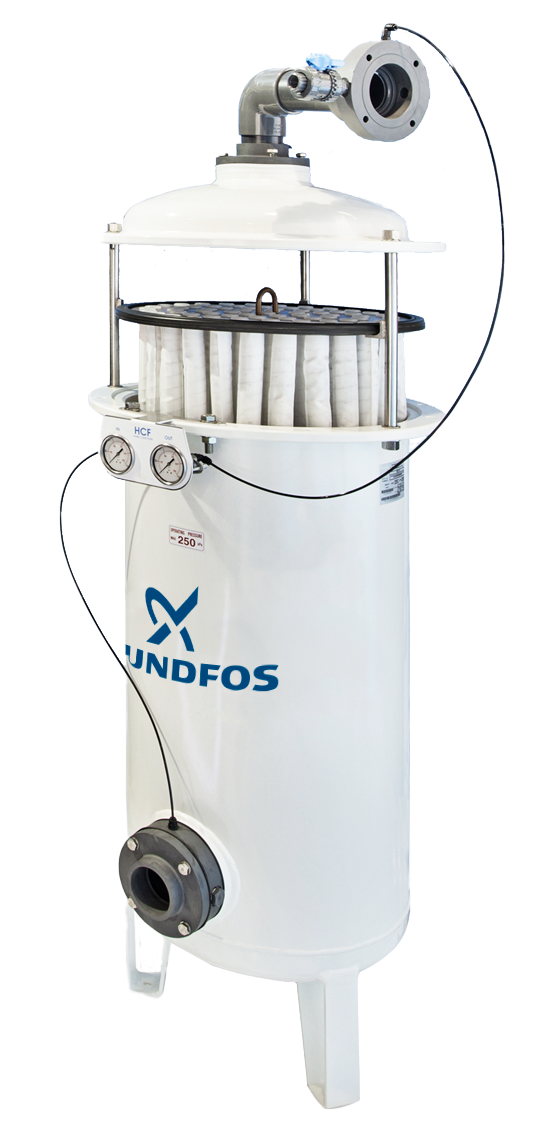 Grundfos ha utilizzato per la prima volta la tecnologia di filtrazione a diatomea nel campo delle piscine negli anni ‘60 ed è presente sul mercato con gli Hydro-Cleer FIlter (HCF), che si contraddistinguono per gli “elementi autopulenti”, esclusivi e brevettati, che fanno da supporto al manto di diatomee. La caratteristica brillantezza e lucentezza dell’acqua, conferite dal passaggio attraverso la farina fossile, di una piscina trattata con filtri a diatomea è difficilmente comparabile con quella di una piscina dotata di filtri a sabbia.