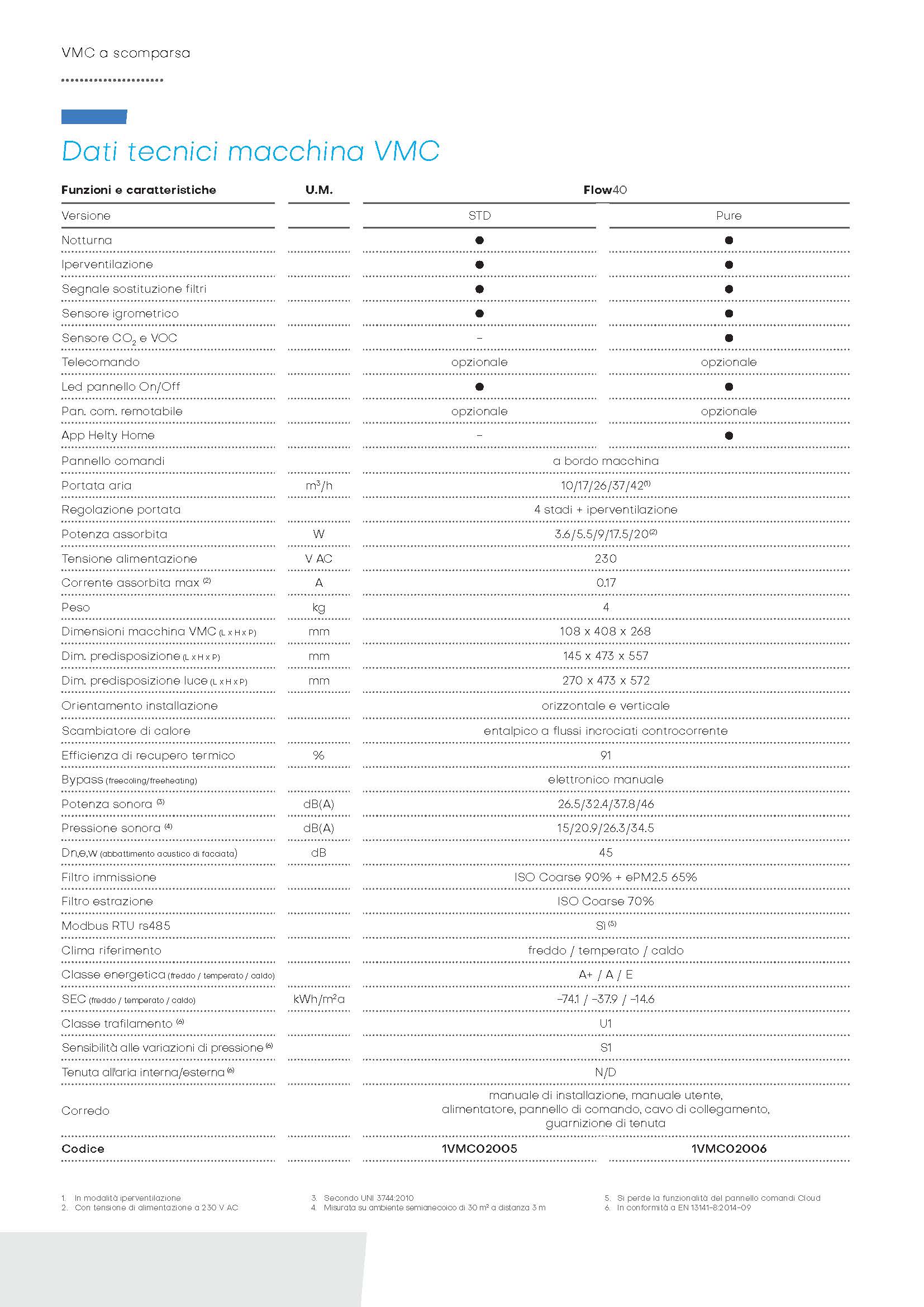Flow40 è anche un alleato contro condense, muffe e inquinanti, grazie all'igrometro integrato per una costante rilevazione dell'umidità e alla versione Flow40 Pure, che include sensori per CO2 e VOC e offre la possibilità di gestione tramite l'app Helty Home, assicurando così un controllo completo sulla qualità dell'aria in ogni momento. Con Flow40, l'innovazione VMC diventa invisibile ma estremamente efficace, ridefinendo il concetto di comfort abitativo.