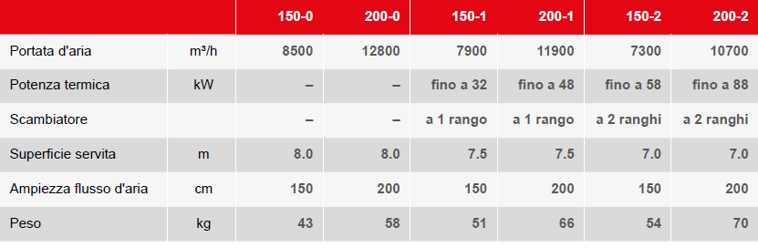 Possibilità di riscaldamento, ricircolo e diffusione dell’aria