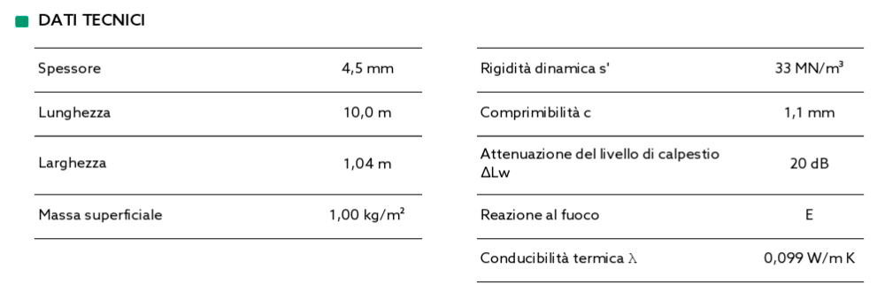 Il prodotto è particolarmente indicato per la posa sotto parquet prefinito e pavimenti laminati, anche direttamente su superfici esistenti. È una soluzione efficace per la correzione acustica in ristrutturazione, quando non è possibile rimuovere il massetto.