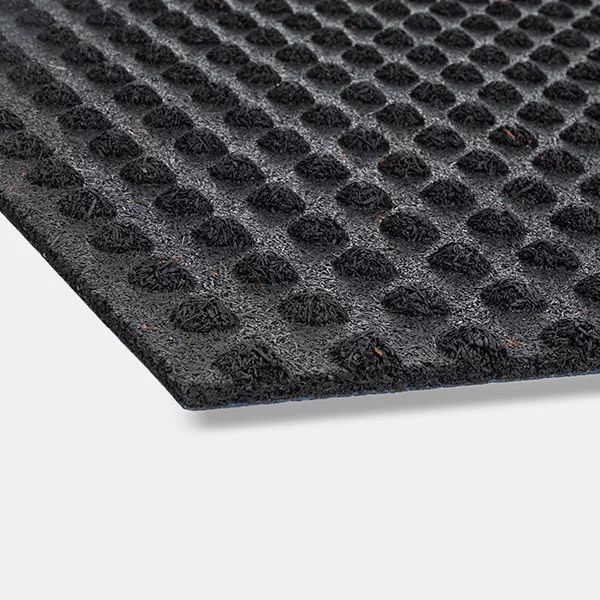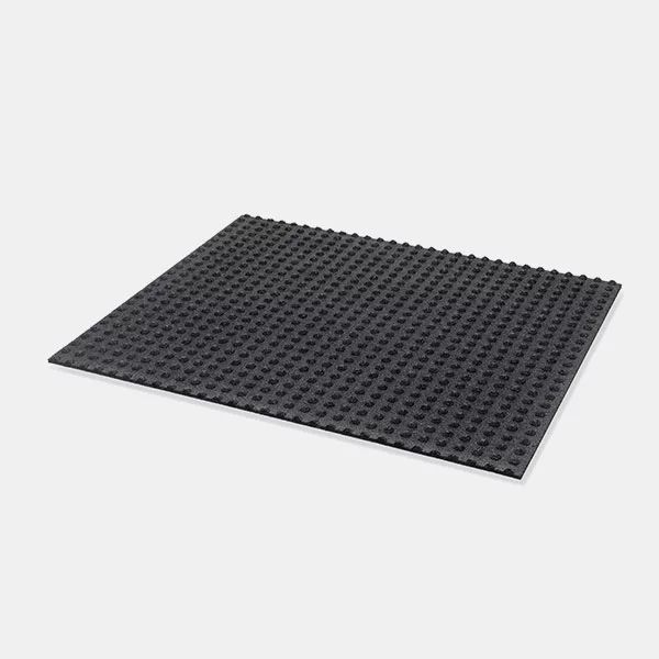 I pannelli dell'isolante acustico ad elevate prestazioni meccaniche presenta una superficie sagomata dallo spessore complessivo di 18mm. Il pannello è composto da fibre di gomma ottenuta da riciclo di PFU agglomerate a caldo con collante poliuretanico accoppiato ad un tessuto non tessuto antistrappo politenato di colore blu sul lato superiore.