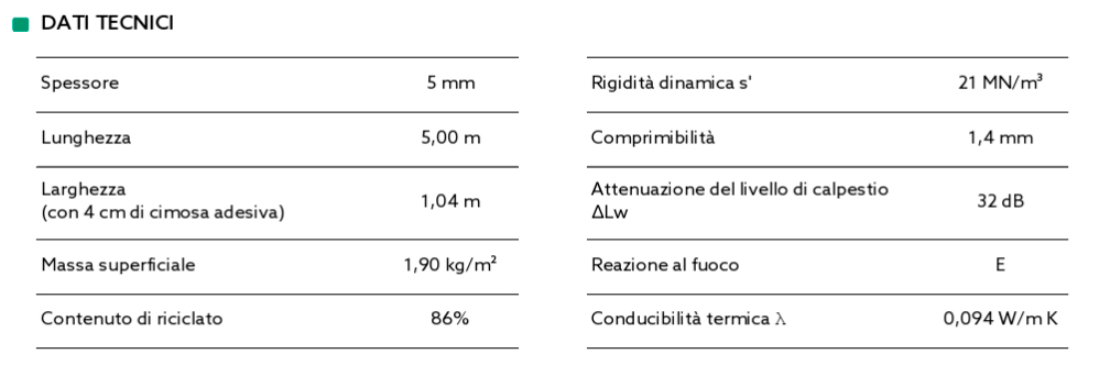 Con uno spessore di circa 5 mm, ROLL garantisce elevate prestazioni anche in interventi a basso spessore, con un’attenuazione del rumore da calpestio fino a 32 dB. La struttura elastica in gomma SBR assicura resistenza e flessibilità, adattandosi alle superfici e contribuendo alla riduzione della trasmissione delle vibrazioni.