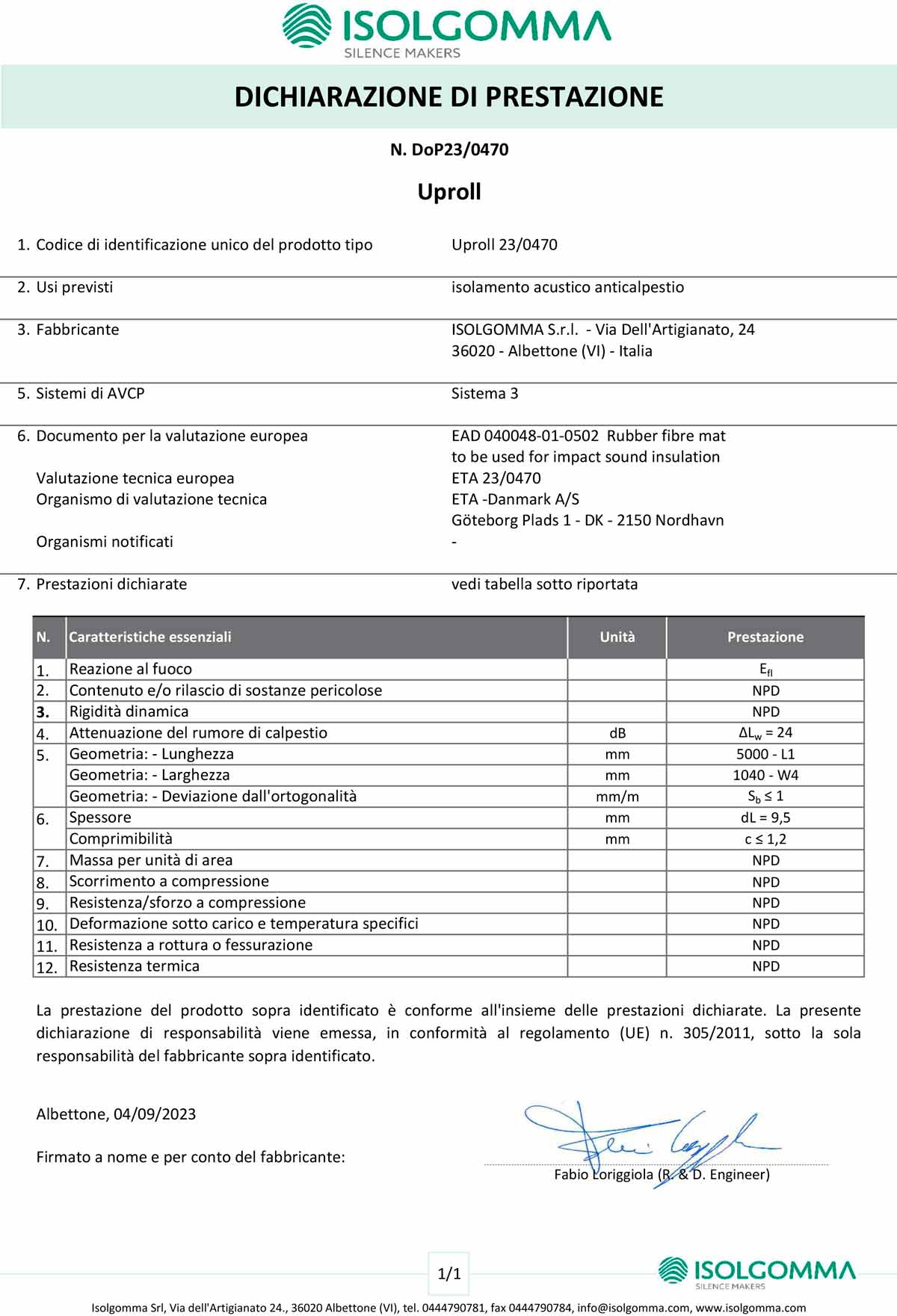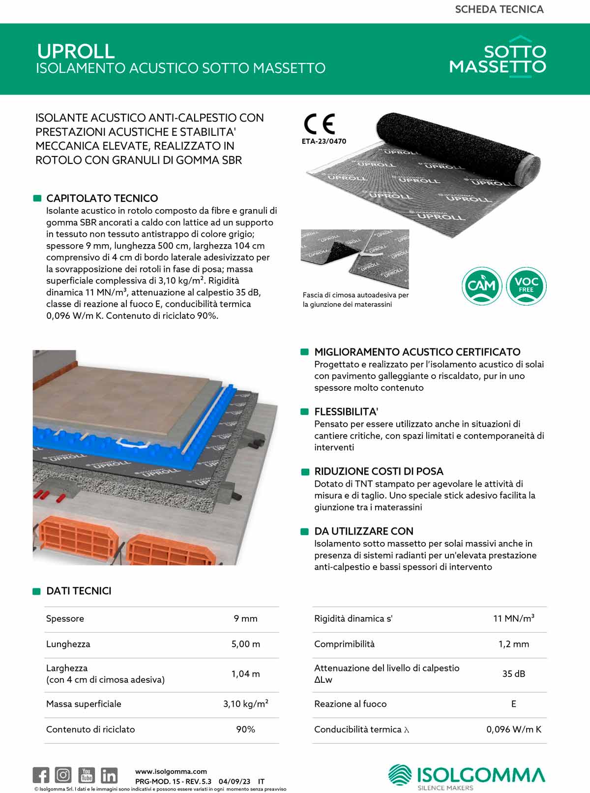 Garante di elevate prestazioni nonostante lo spessore ridotto, l'elevata resistenza all'umidità, l'isolante UPROLL può essere facilmente e rapidamente posato in opera.