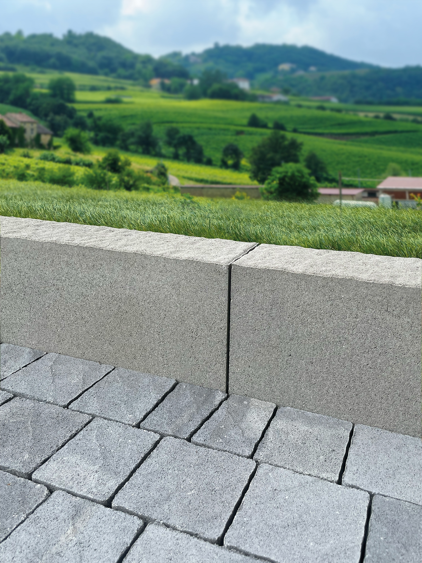 Cordolo Natura è la bordura in calcestruzzo con finitura effetto pietra, progettata per definire e valorizzare pavimentazioni e spazi esterni con eleganza e durabilità.
