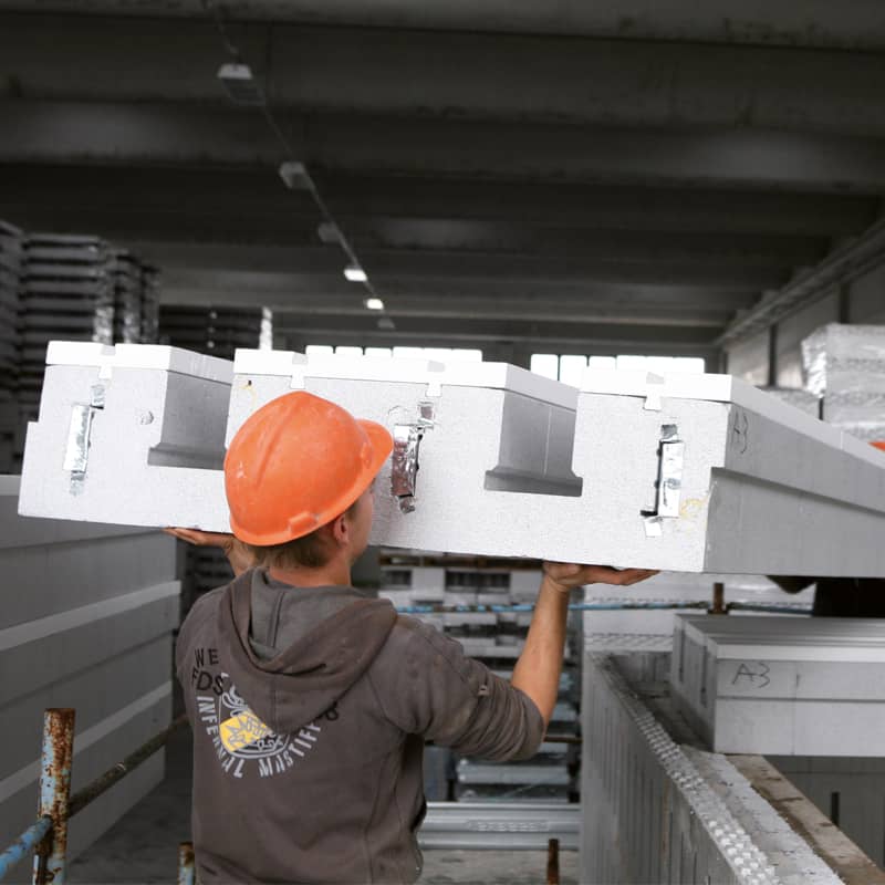 ⦁ Coibentazione integrata: realizzazione in opera della struttura in calcestruzzo, con risparmio economico nella posa