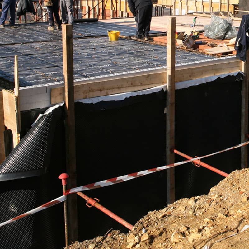 Scudox, la membrana applicabile a ridosso delle strutture dell'edificio o a sistemi di impermeabilizzazione, permette una separazione dal terreno di scavo tutt'intorno, proteggendo gli edifici dal deterioramento causato dal terreno o da apparati vegetali.
