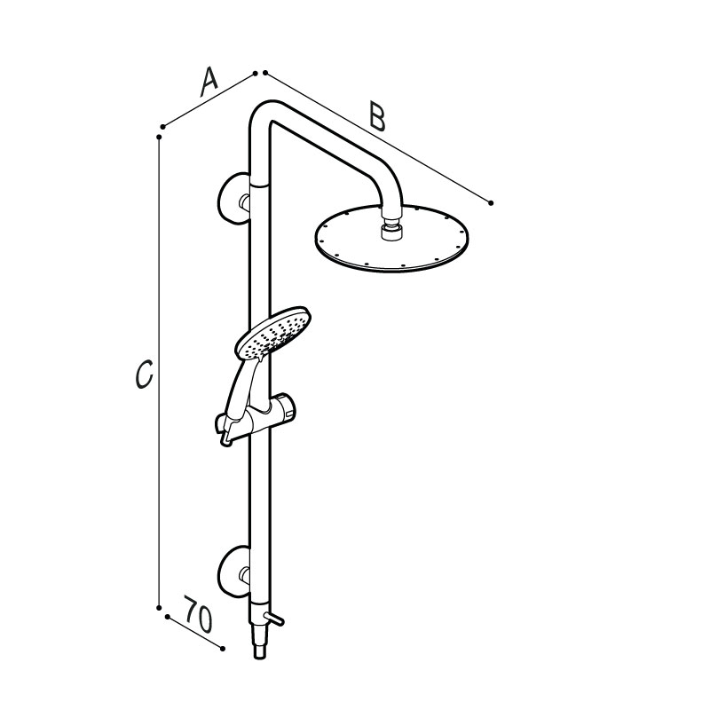 Sicura, realizzata in acciaio inox dal diametro di 32 mm., e provvista di sistema di ingresso acqua. Caratteristica unica, il sistema di Double Water Inlet. Munita di soffione doccia orientabile e doccetta a mano 3 getti dal diametro di 130 mm. con supporto saliscendi e flessibile di 150 cm anti torsione. Progettata per essere accessibile anche a persone con disabilità e per arredamento bagno sicuro.