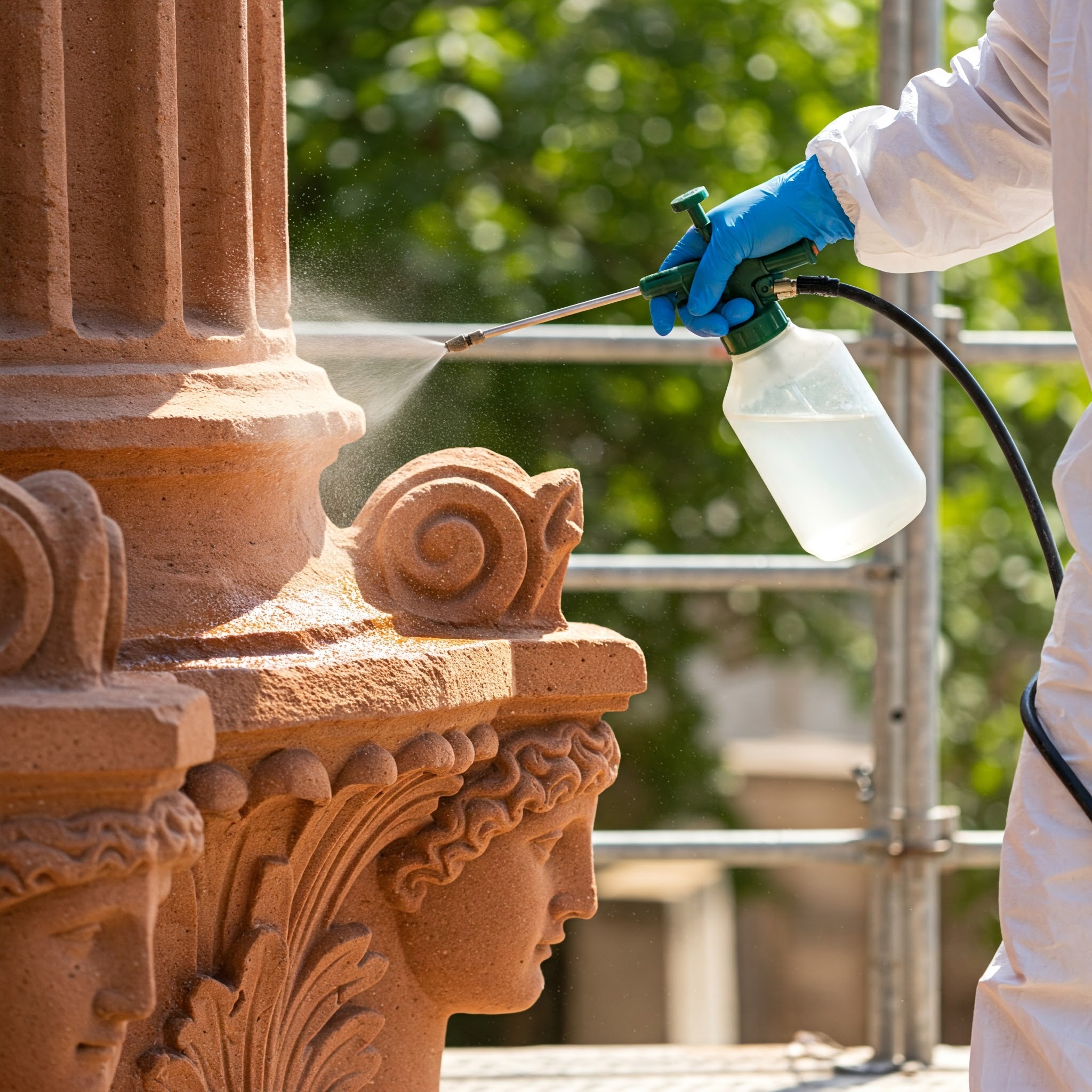 La formulazione innovativa contiene un gel di silice nanostrutturata che, una volta applicato, forma uno strato di silice amorfa sottile, incolore e trasparente. La frazione idrofobica si orienta verso l'esterno, impedendo l'assorbimento di acqua e delle sostanze nocive da essa veicolate, mentre mantiene la naturale capacità del materiale di "respirare".