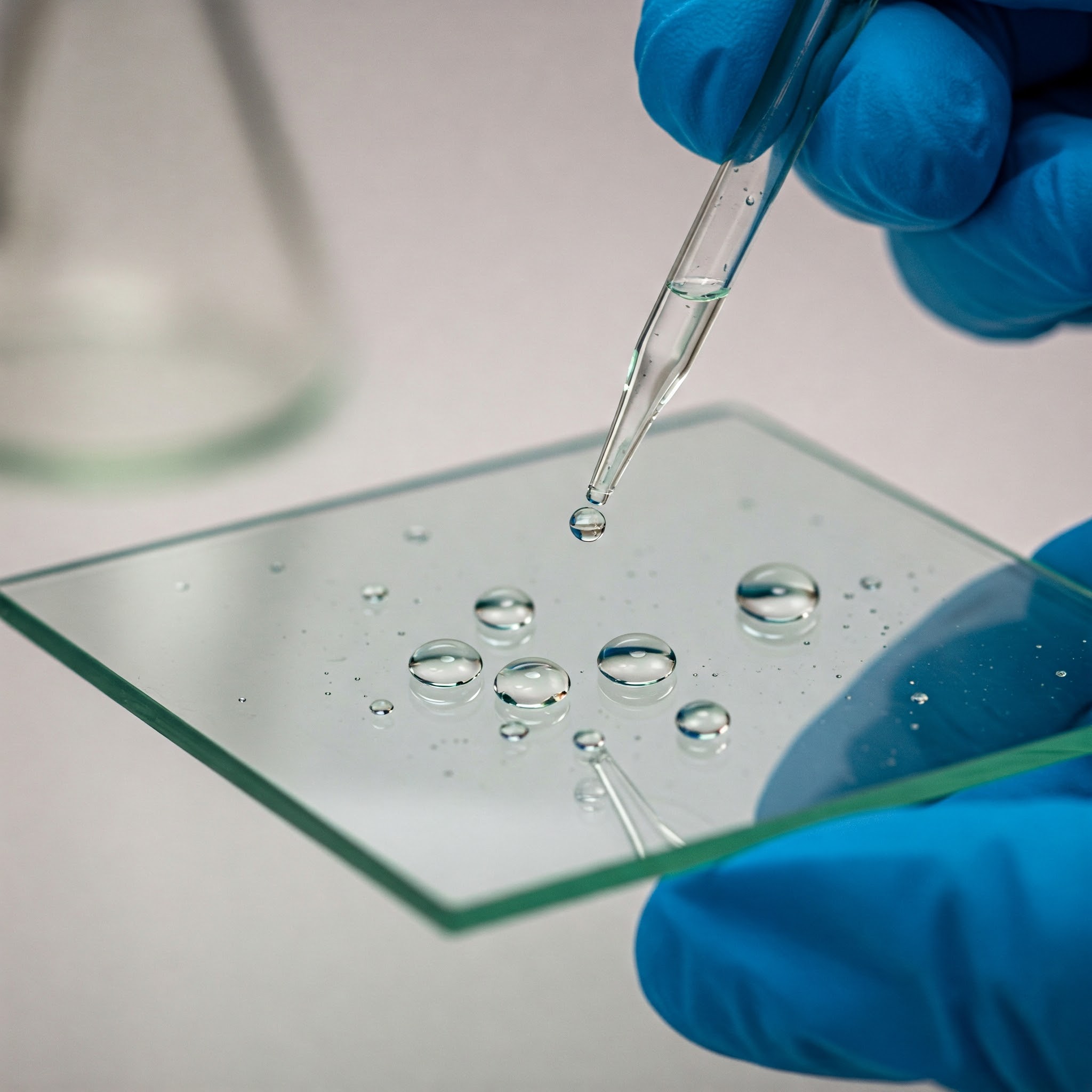 La formulazione contiene un gel di silice nanostrutturata e funzionalizzata che, una volta applicato, forma uno strato di silice amorfa sottile, incolore e perfettamente trasparente. Il trattamento riduce significativamente la rugosità media superficiale (RMS) del vetro, incrementando la resistenza al degrado chimico-fisico e aumentando naturalmente l'idrorepellenza del materiale, con effetto "goccia d'acqua" che facilita la pulizia e mantiene la trasparenza.