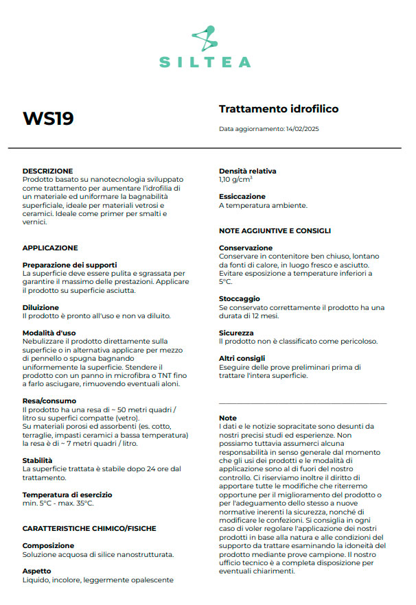 WS19 è un trattamento innovativo basato su nanotecnologia, specificamente sviluppato per aumentare l'idrofilia dei materiali e uniformare la bagnabilità superficiale. Ideale per materiali vetrosi e ceramici, questo prodotto rappresenta la soluzione professionale perfetta come primer per smalti e vernici, garantendo adesione ottimale e finitura uniforme su superfici che presentano problemi di bagnabilità.
