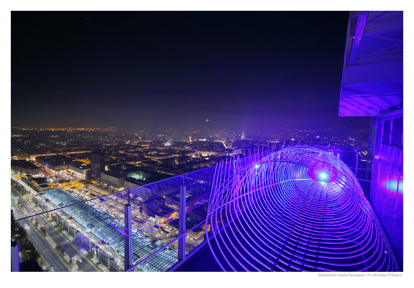 L’installazione realizzata da Migliore+Servetto Architects per il grattacielo Intesa Sanpaolo a Torino in occasione di “Luci d’artista” è un’opera dinamica in cui luce e riflessi si espandono, rendendola un organismo pulsante