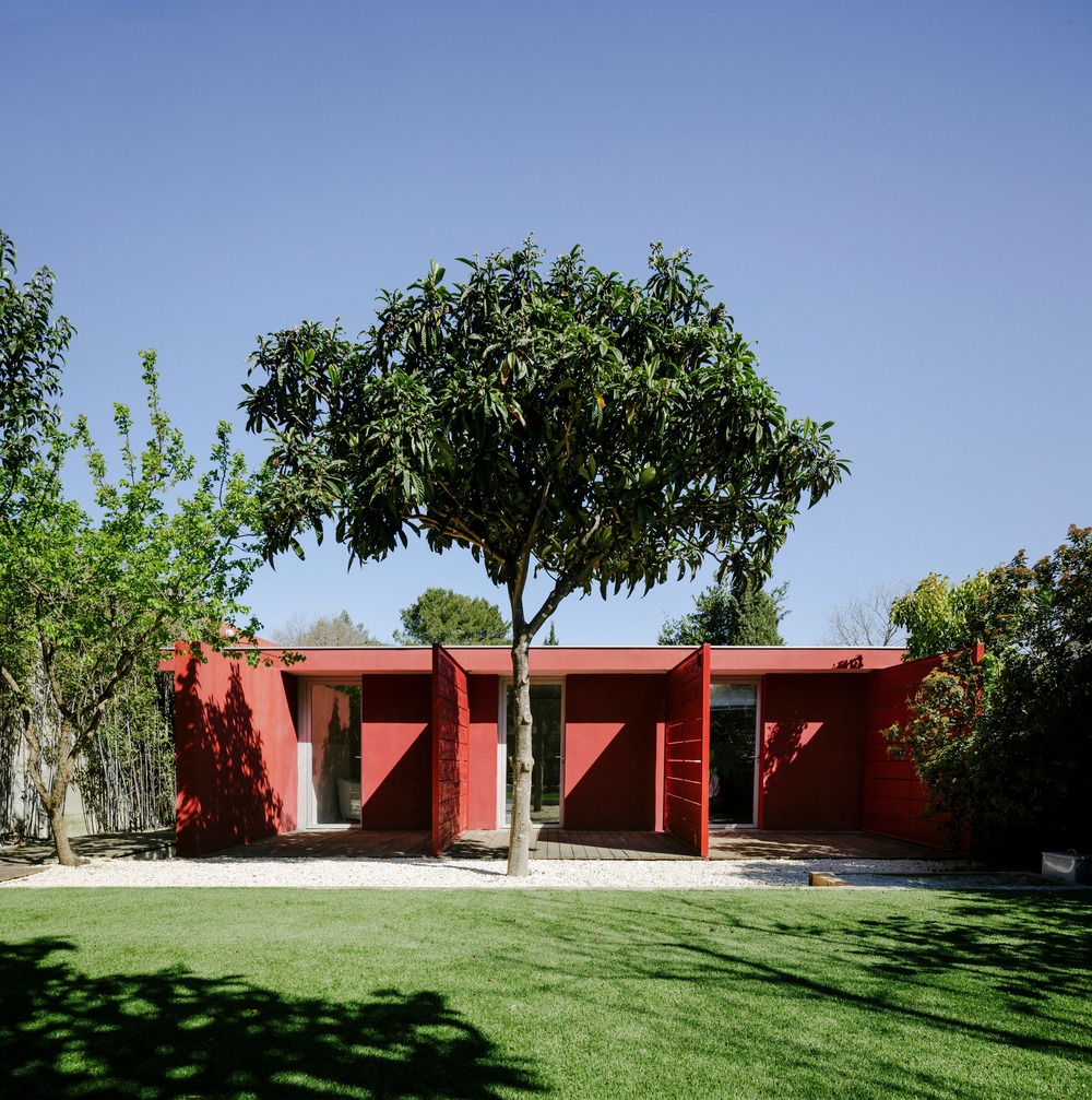 La villa, situata a Castelnau-le-Lez, nel sud della Francia, risalente agli anni Novanta, è stata ristrutturata dallo studio (ma! ca) architettura migliorando l'ingresso della luce naturale e sottolineando la prospettiva dall'atrio verso il giardino