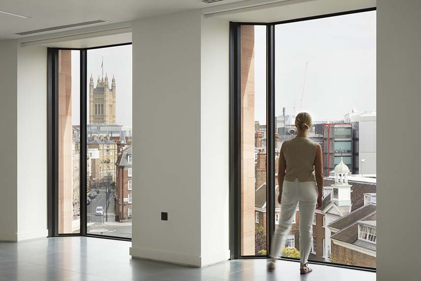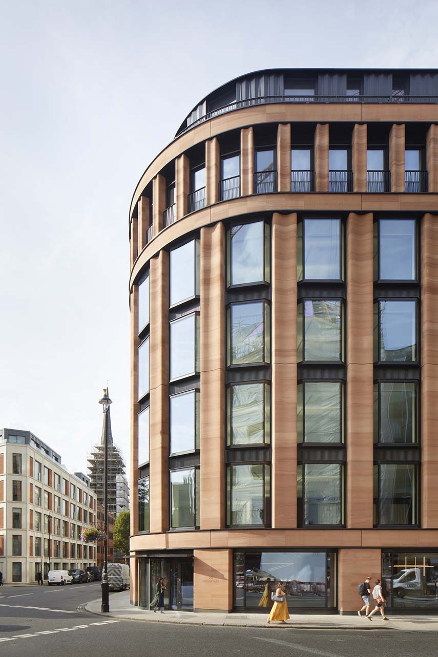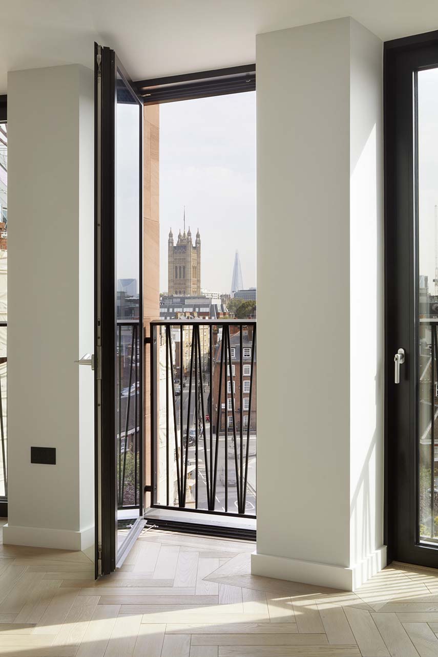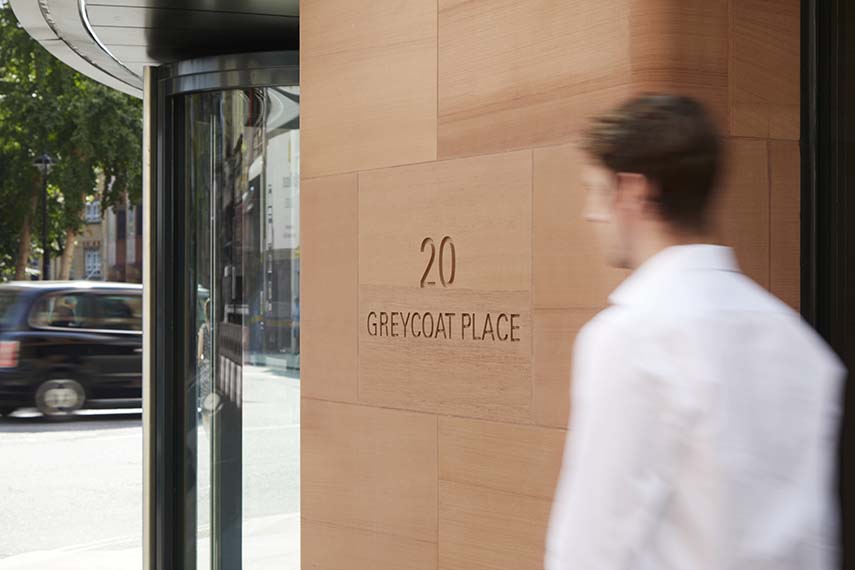 L'ispirazione di Squire and Partners per il design di 18-20 Greycoat Place deriva dallo stile architettonico prevalente nella zona, in particolare l'Art Déco, visibile in edifici storici come l'Artillery House. I pilastri in arenaria che si innalzano verticalmente lungo la facciata non solo rendono omaggio a questo stile ma creano anche una continuità visiva con i blocchi residenziali circostanti. La scelta dei materiali, come l'arenaria rossa e gli elementi in alluminio scuro, si ispira agli edifici iconici della zona, inclusa la Cattedrale di Westminster, unendo così storia e modernità in un dialogo architettonico coeso.