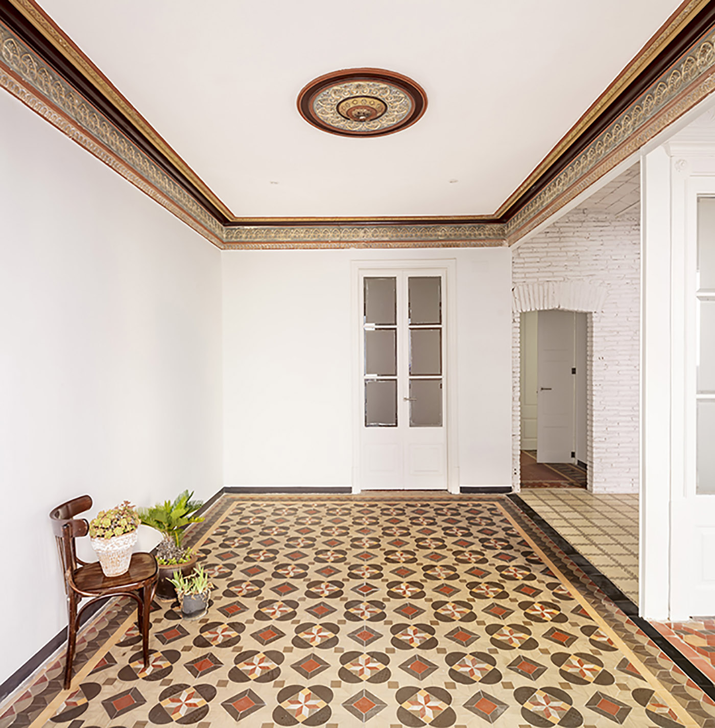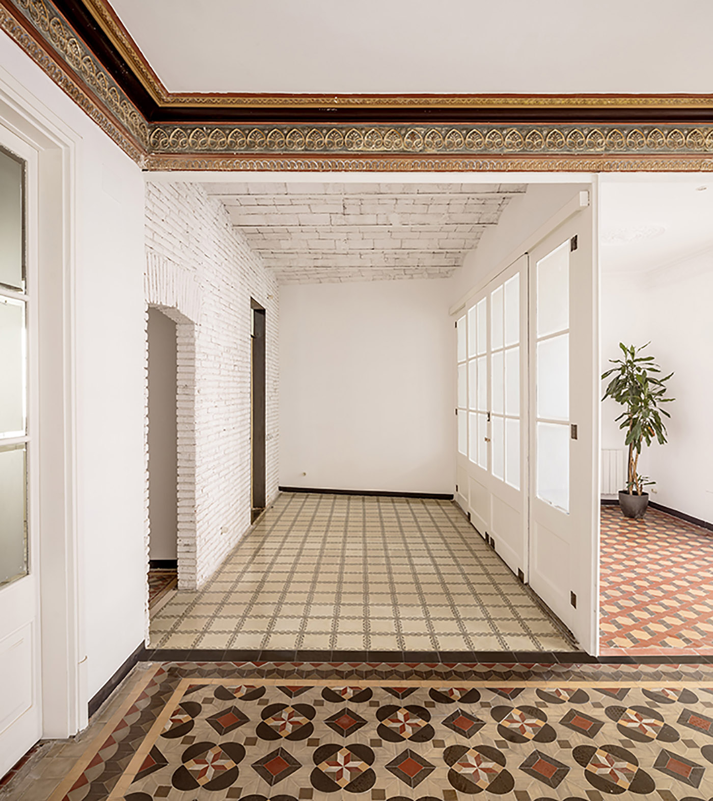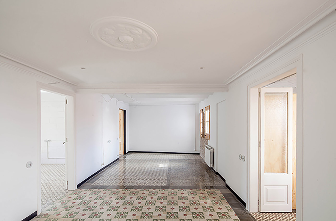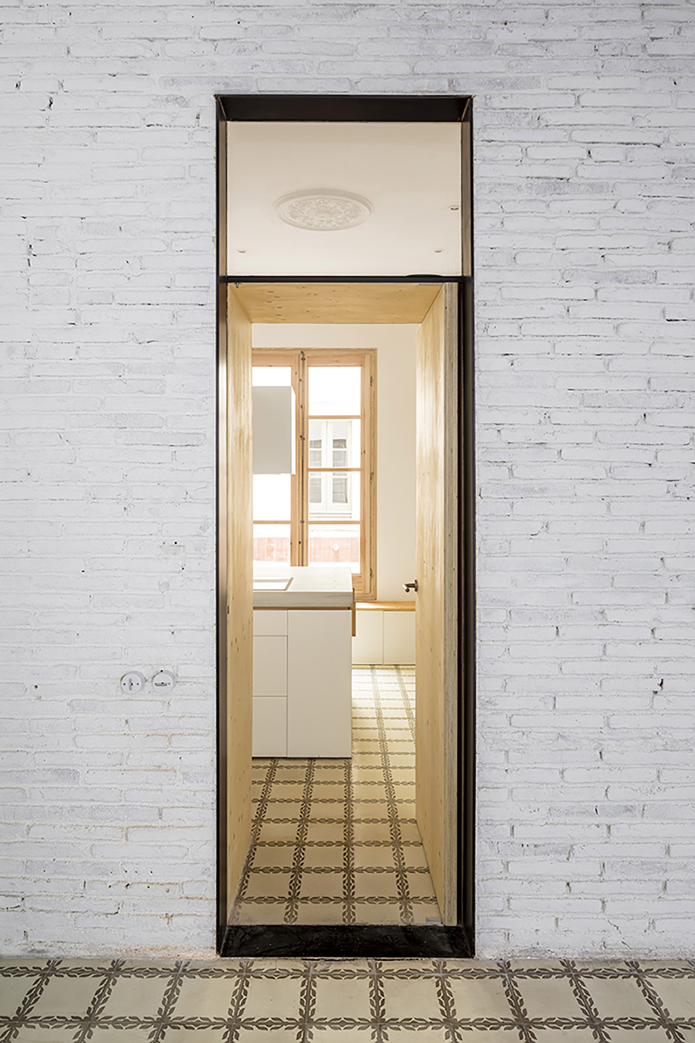 L’intervento di ristrutturazione 27+14 da parte dello studio spagnolo Agora arquitectura consiste, prima di tutto, in un minuzioso lavoro di rimozione, definibile quasi archeologico. Vengono rimossi tutti gli elementi costruiti e installati nei periodi successivi a quello di costruzione dell’edificio; installando poi gli impianti necessari alle nuove abitazioni nelle tracce dei muri demoliti o in canaline esterne per tutelare le pavimentazioni originali, si crea un nuovo programma abitativo adeguato ai nostri tempi che convive, pacificamente e con equilibrio, con il fantasma del passato