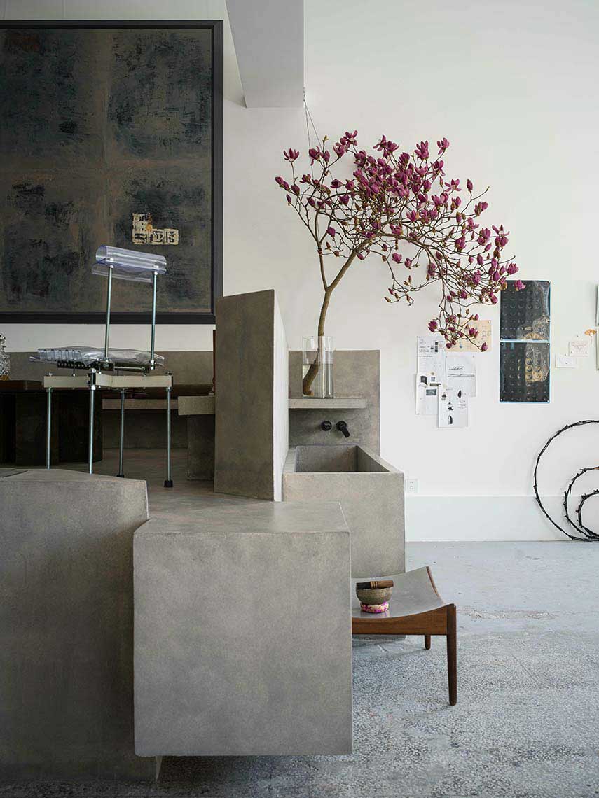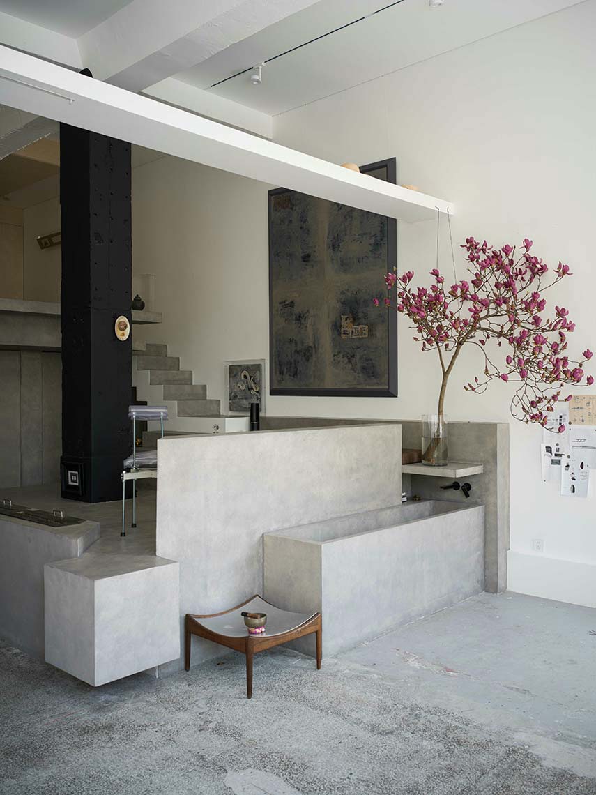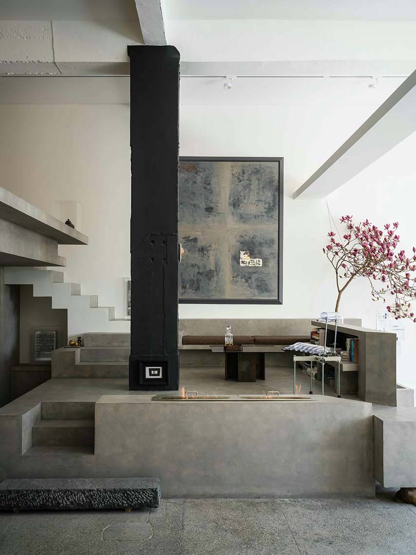 Il team di creativi di NONG STUDIO è noto per i suoi evocativi progetti di interior design e per la creazione di spazi poetici. Nel caso del 743 ART Lab disegna per il suo cliente un luogo che vuole incarnare sia lo studio di un artista, che la galleria in cui esporre le opere, che lo spazio in cui dedicarsi alla meditazione. Il tutto avviene nella totale assenza di linguaggio decorativo che lascia campo libero all’essenza dell’edificio e ai giochi di luci e ombre