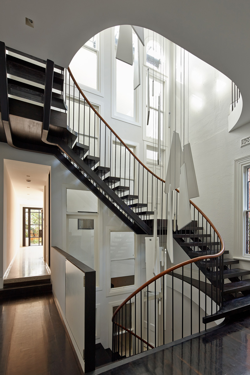 In origine, si entrava nell'abitazione attraverso un corridoio buio situato sotto una scala. Adesso un accogliente ingresso si apre su un vuoto distribuito su più livelli, inondato di luce solare e di ventilazione naturale. Una scala situata in una posizione centrale caratterizza gli spazi