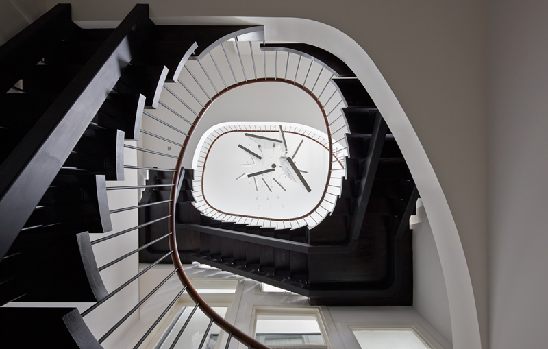 Tutti i pezzi di materiale che sono stati recuperati dalla demolizione sono stati desinati al riciclaggio: ad esempio i gradini e le balaustre delle scali originali sono diventati un lampadario. Le parti posteriori dell'abitazioni, non utilizzare, sono state sostituite da ambienti abitabili aperti sul giardino