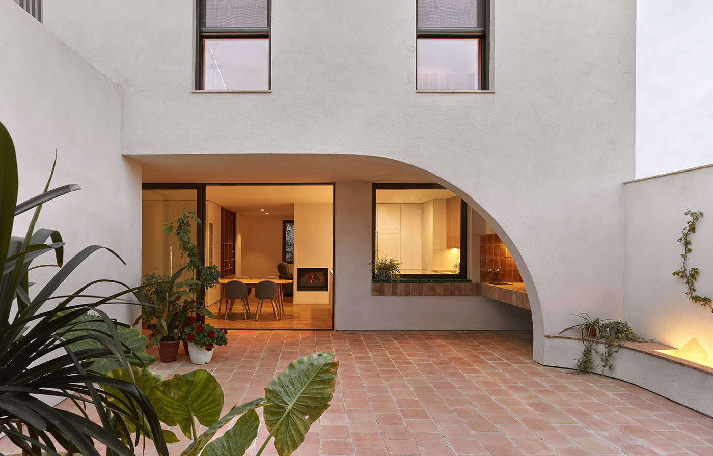 La presenza del patio permette di aumentare la superficie della casa a contatto con l'esterno, garantendo che tutti i suoi spazi siano illuminati con abbondante luce naturale e possano avere una ventilazione incrociata che garantisca il corretto funzionamento termico della casa