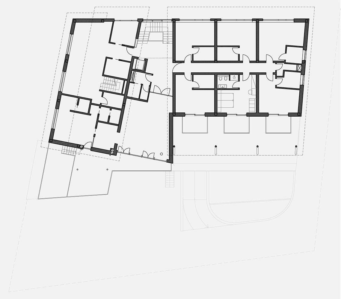La struttura precedente è stata interamente demolita per creare un piano interrato da adibire a garage, locali di servizio e locali tecnici