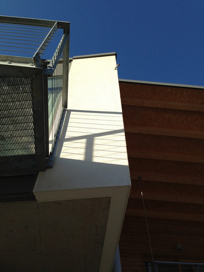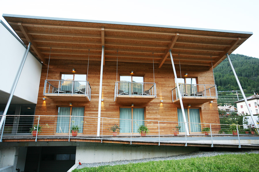 L’edificio, grazie alla sua forma ad L e ad un orientamento ottimale, ben si presta ad essere energeticamente efficiente sfruttando passivamente il sole. Le ampie vetrate a sud infatti sono ideali anche per l’illuminazione naturale e per la vista verso uno stupendo panorama di frutteti e il profilo delle montagne