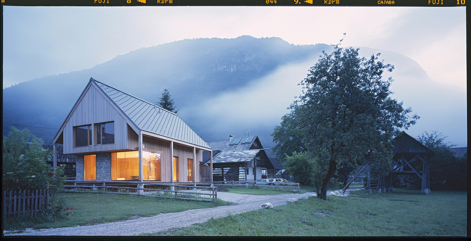 Situato in un villaggio alpino sloveno, lo chalet nasce dalla modifica di un progetto acquistato dal cliente, assieme al lotto da edificare e al permesso di costruire, non dimenticando la tradizione del luogo in cui sorge