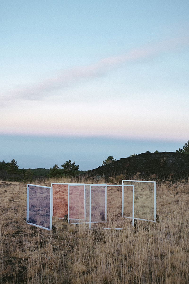 Dispositivi di distorsione percettiva, trasparenze, mimesi, modulazioni della luce e l’uso materico di tinte e cromie, ispirano l’ideazione di installazioni effimere e temporanee, che rendono protagonisti elementi primordiali come il ghiaccio, la terra, il fumo. Tracce di questa ricerca, compiuta studiando il luogo con approccio scientifico oltre che percettivo, confluiscono all’interno di una mostra