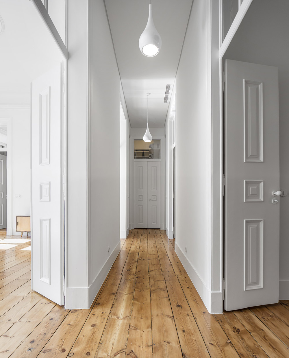 Le stanze sono state progettate in modo tale da poter rimanere sempre aperte, interagendo da est a ovest dell'appartamento, dotando l'area di un certo rapporto visivo e spaziale intermittente. La cucina conserva ancora le piastrelle originali ottocentesche e il mobile di stoccaggio superiore, che è stato conservatore e restaurato, mentre il pavimento è stato cambiato