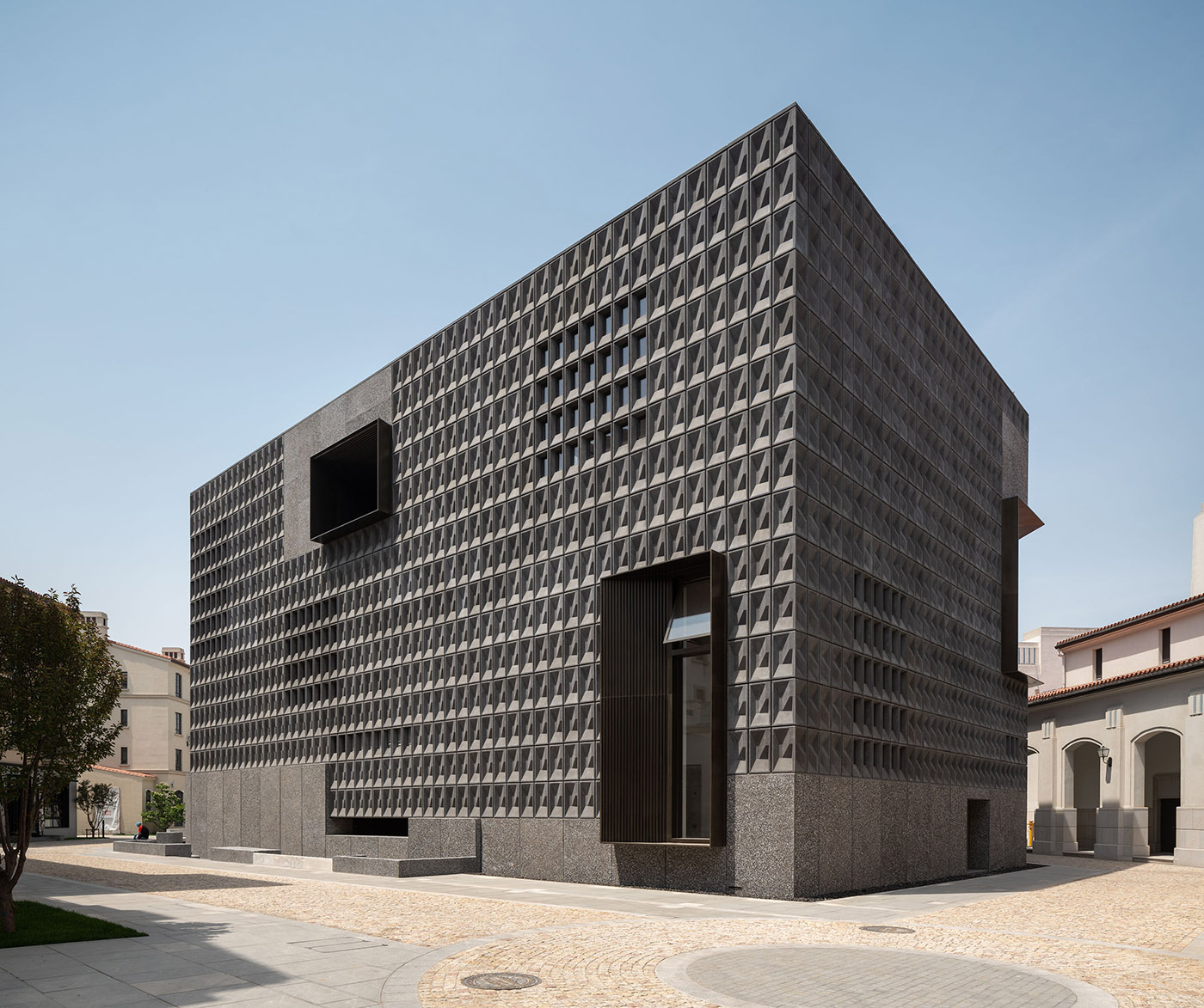 Composto principalmente da vari pezzi in cemento armato strutturati, la facciata e la materialità creano un edificio pesante, come una roccia solida seduta saldamente nell'ambiente mutevole. Le superfici lisce riflettono i cieli che cambiano, mentre le unità modulari sagomate riprendono il gioco delle ombre durante il giorno. Gli elementi in bronzo fungono da accenti sulla pesante facciata per catturare la luce e attirare l'attenzione sull'ingresso di ogni galleria