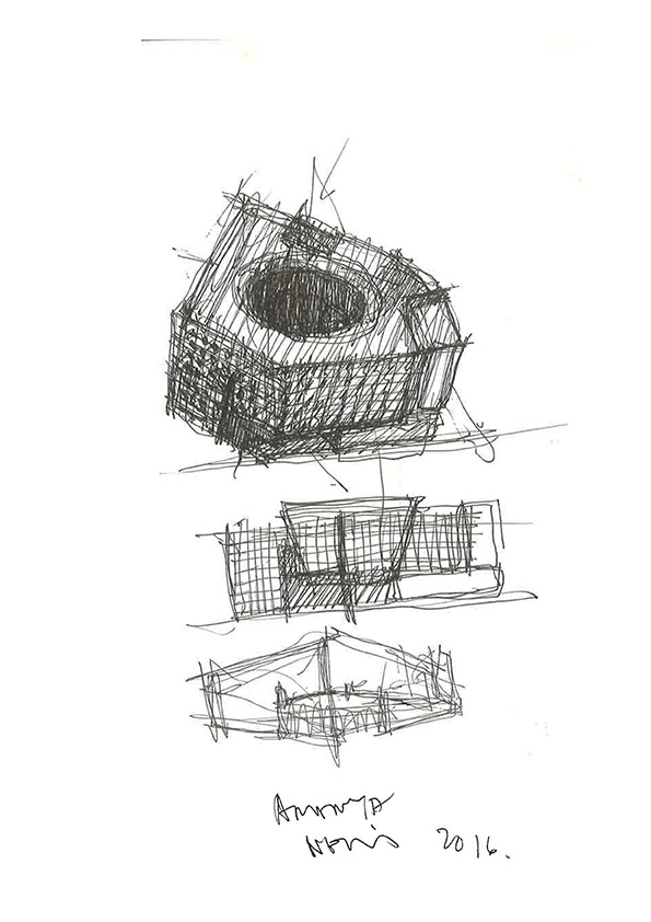 Il progetto nasce quando il promotore Aranya chiede allo studio Neri&hu di progettare un centro d'arte all'interno di una “comunità balneare”, un luogo dove la forte spiritualità emerge dallo stile di vita a contatto con l’ambiente, da qui l’idea di creare spazi aperti e luoghi di condivisione