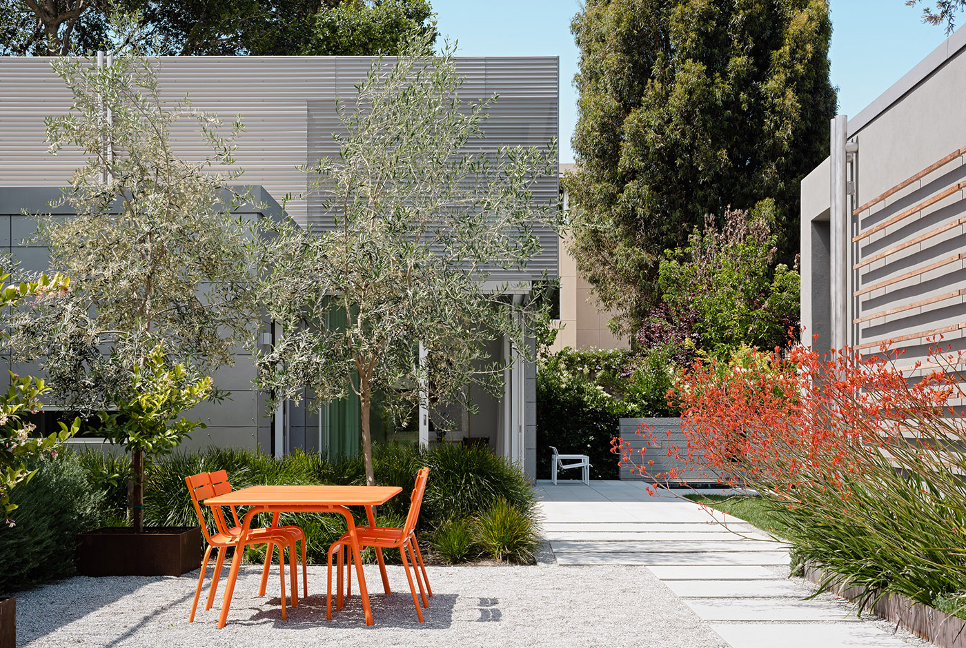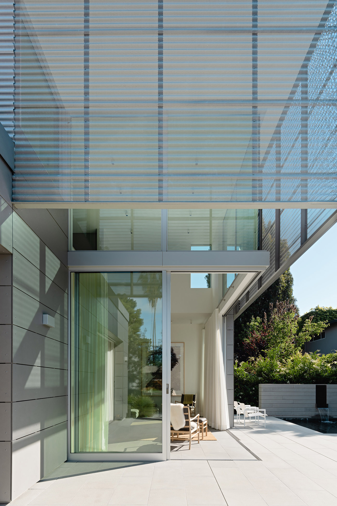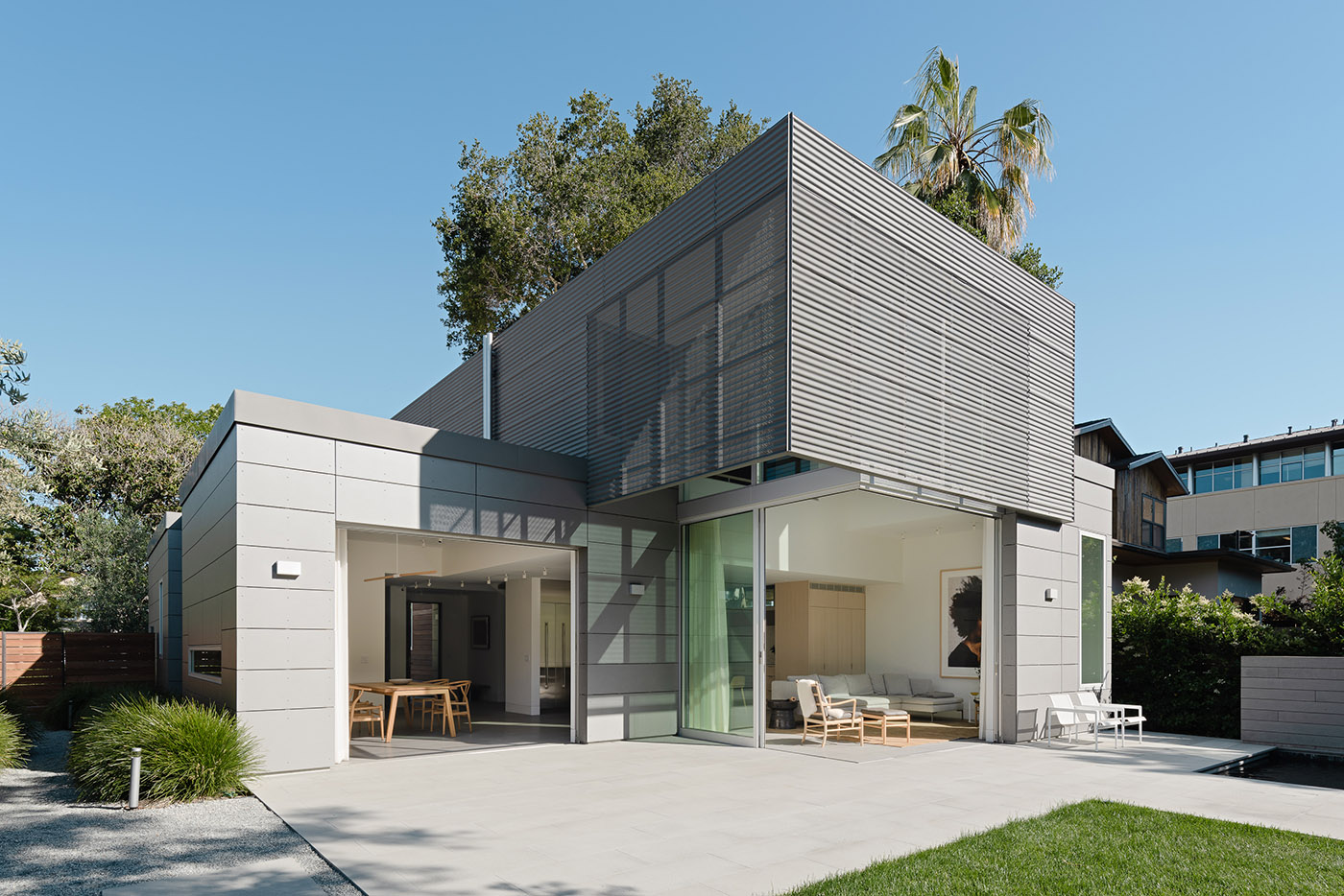 Lo studio Buttrick Projects Architecture+Design specializzato in progetti di architettura e design,a cui viene commissionato l’intervento si trova davanti alla sfida progettuale di risolvere la geometria trapezoidale del sito, rispettando la scala del quartiere e fornendo abbastanza spazio aperto per soddisfare le esigenze della committenza. Oltre allo spazio per la famiglia era necessaria una struttura modulata per archiviazione e studio d’arte. Questi spazi avevano necessità di discrezione rispetto alla residenza, sono così stati posizionati sul retro, creando una falsa prospettiva e aumentando la profondità percepita.