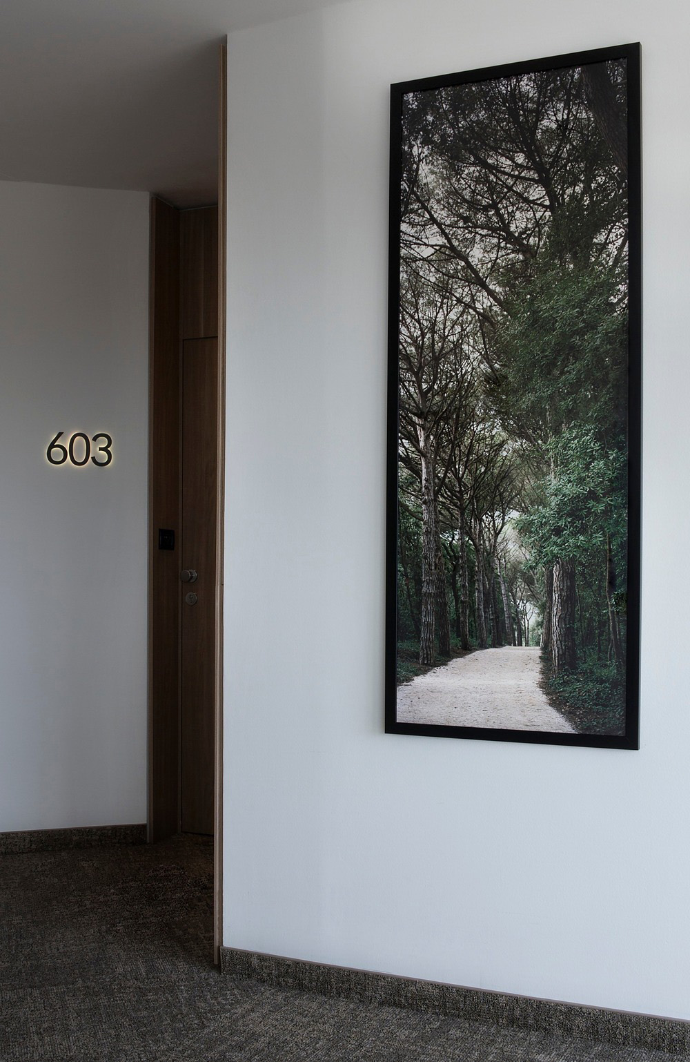 359 fotografie sono state montate in scatole retroilluminate e installate nelle suite e nelle stanze. Inoltre, le fotografie incorniciate appese nei corridoi contribuiscono a creare un ambiente coinvolgente in tutto l'Hotel. Di giorno, i "quadri" creano viste parallele dell'esterno; di notte, creano un bagliore soffice e intimo. Il lavoro dell'artista incoraggia gli ospiti ad esplorare il territorio e la sua storia. L'arte può aiutare a creare un'esperienza unica