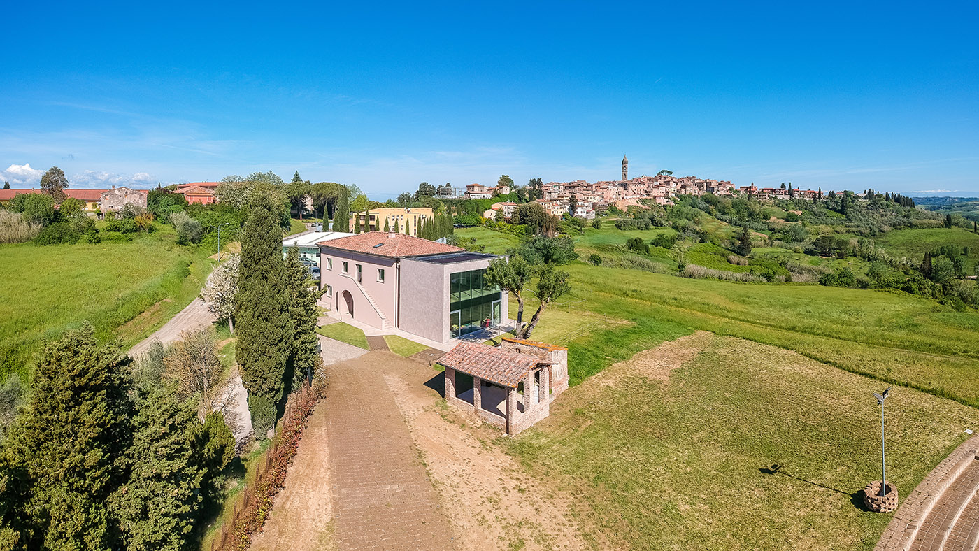 Nella splendida cornice della campagna toscana, a Peccioli, lungo la direttrice che da Volterra conduce a Pisa, un edificio rurale di impianto ottocentesco, ridotto in stato di rudere, è stato ricostruito seguendo i principi del restauro contemporaneo e introducendo le più moderne tecnologie costruttive dallo studio di progettazione Heliopolis 21 Architetti Associati di Pisa