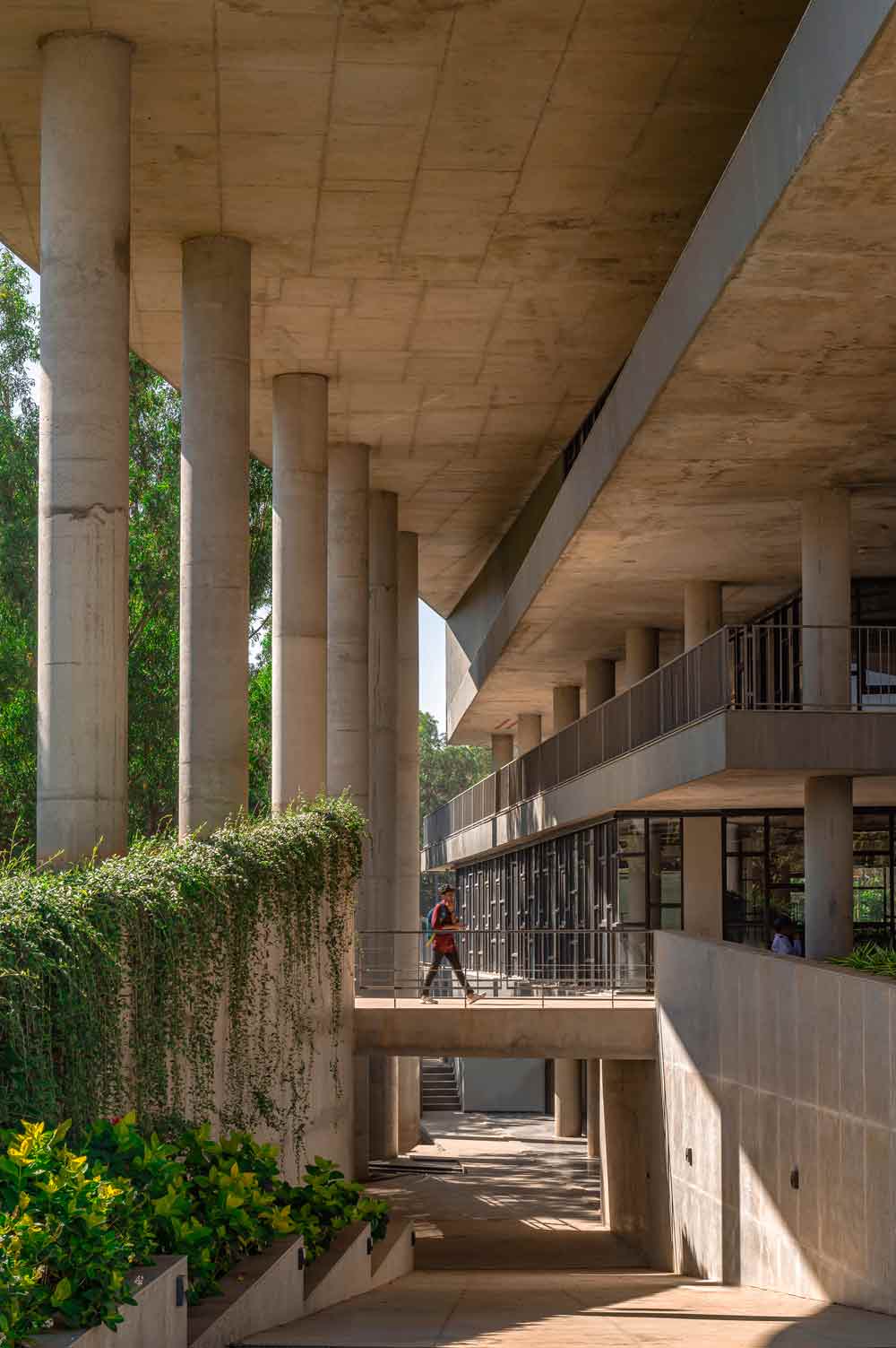 Inserita in un punto strategico del masterplan, la biblioteca del campus SMVIT connette due parti fondamentali dell’università: da un lato gli edifici residenziali, dall’altro i padiglioni accademici. La sua presenza definisce la nascita di una piazza centrale, pensata come cuore sociale del complesso. Qui, il progetto a cura dello studio architettonico Cadence Architects non cerca monumentalità, ma integrazione, favorendo relazioni e percorsi fluidi all’interno della vita universitaria.