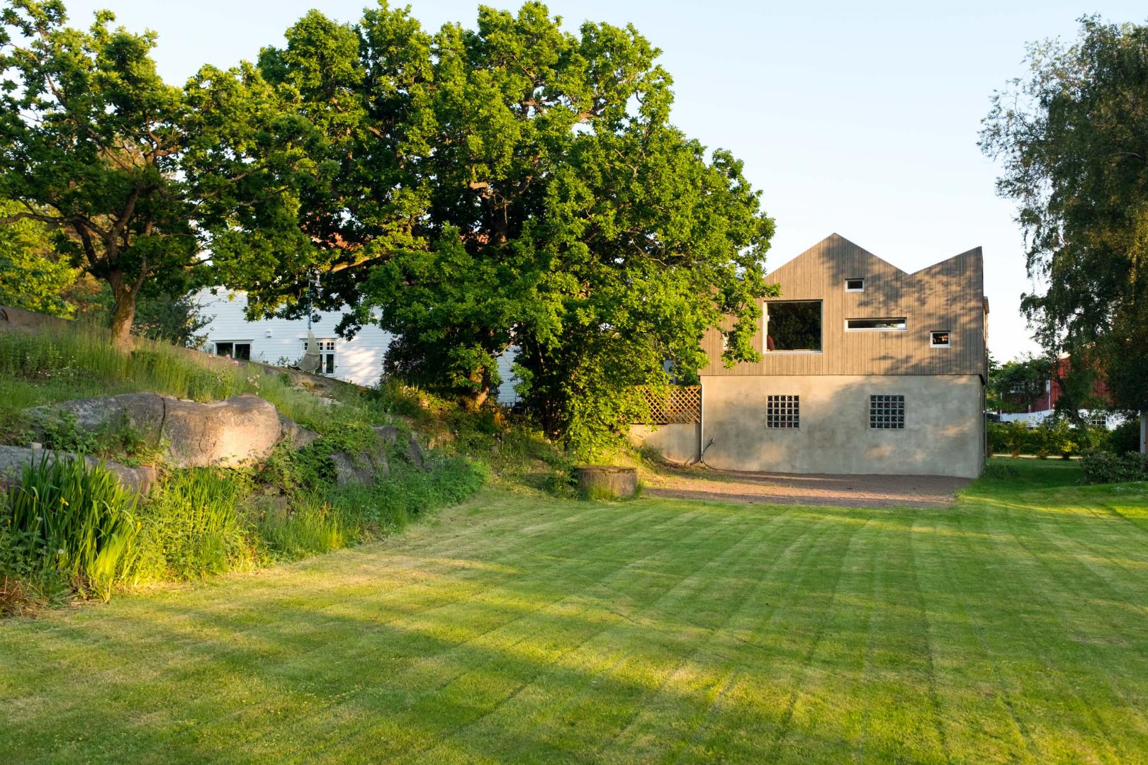 Sull'isola norvegese di Tjøme, NOMA Arkitekter AS ha trasformato il tetto di un vecchio garage in una libreria