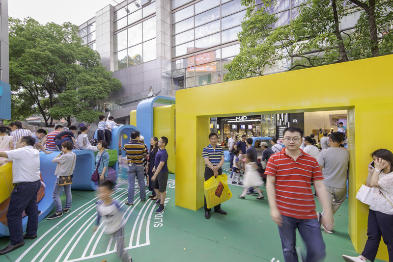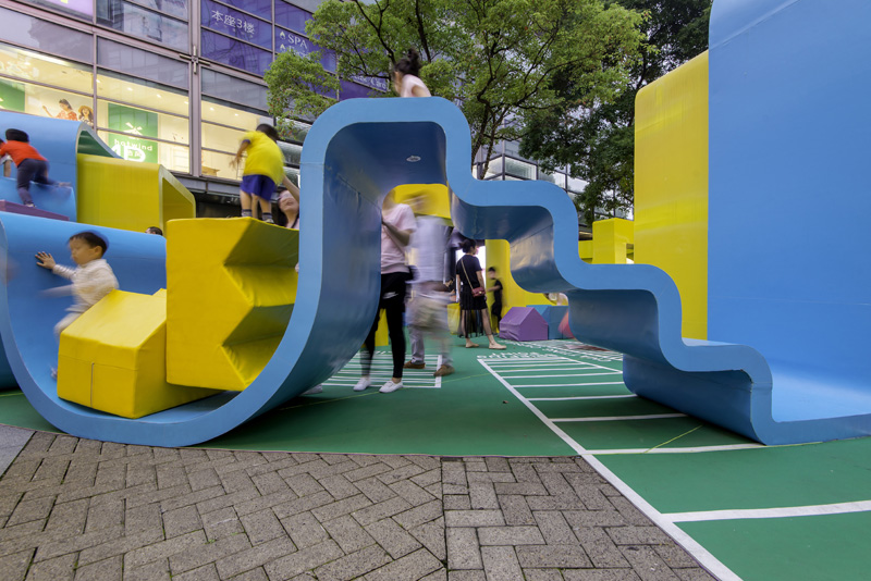 Uno spazio dedicato al divertimento, progettato dallo studio 100architects e situato a Shangai, diventa un punto di incontro per le famiglie, all'interno di un'area protetta, in cui forme geometriche colorate trasformano l'area in un parco giochi