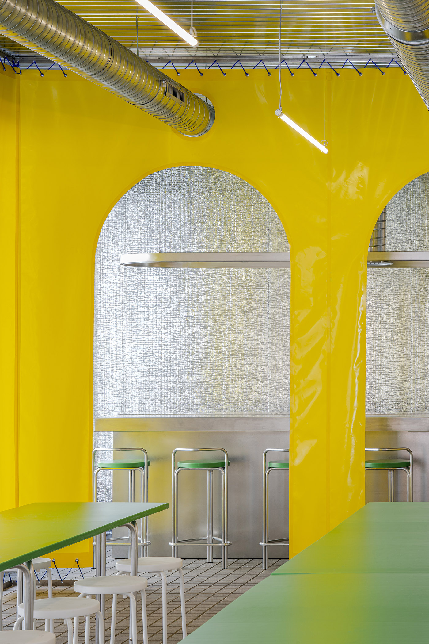 Il progetto del ristorante Brutal Burrito tratta lo spazio come un corpo da vestire, stabilendo così una distinzione tra parti nude e vestite. Lo spazio preesistente rimane non vestito, assumendo un'estetica grezza basata su superfici ruvide intonacate e pavimenti che richiamano la materialità dei marciapiedi circostanti. Un sistema di tessuti invece distribuisce le aree ristoro. È un motivo, quello concepito da BURR Studio, che consente allo spazio di essere vestito per occasioni speciali, di essere vestito in modo più informale per una celebrazione, o di essere vestito in modo elegante per un abbigliamento da lavoro secondo necessità. Un motivo appunto, piuttosto che un design chiuso