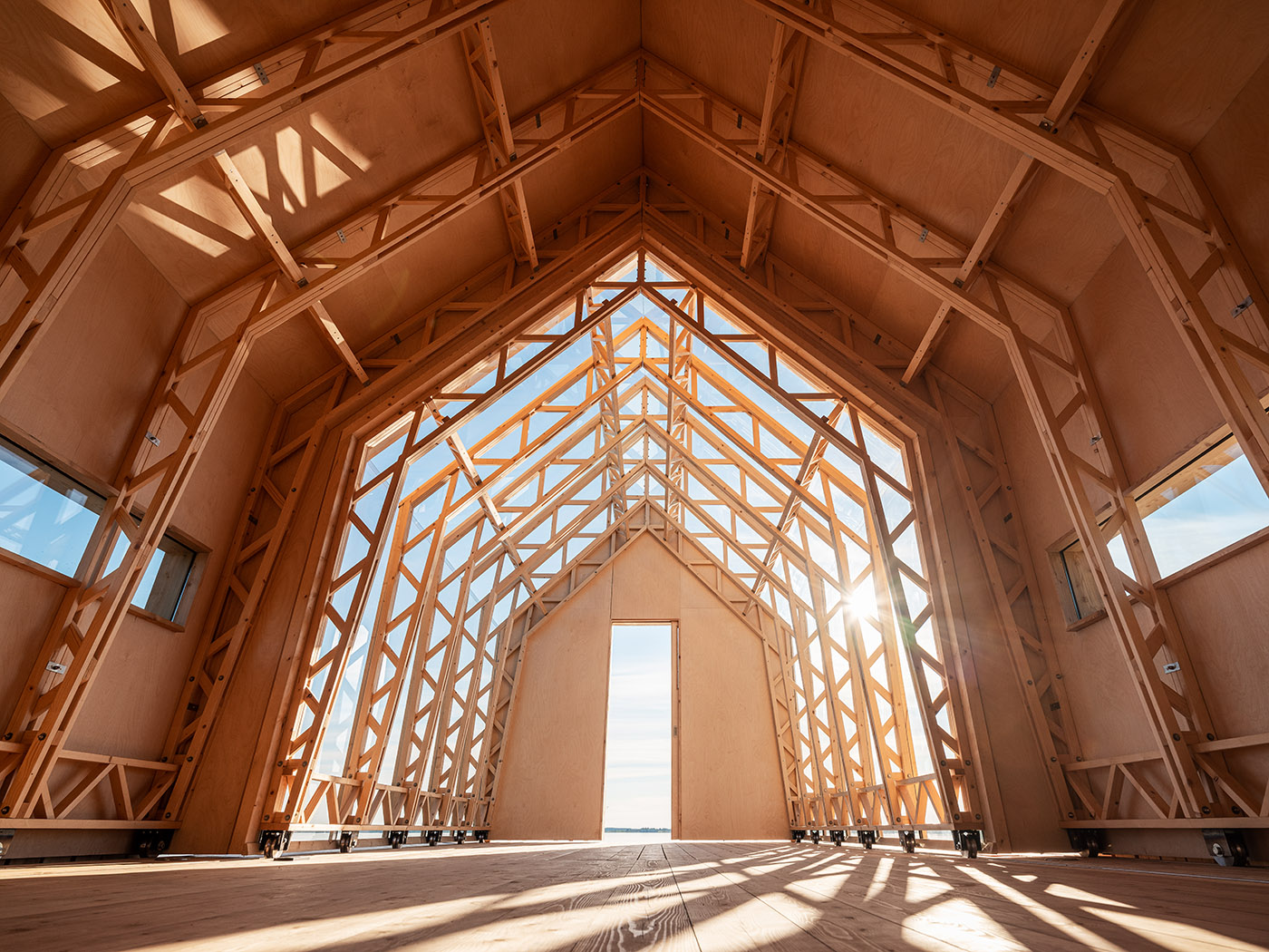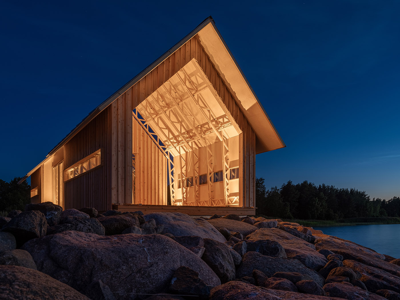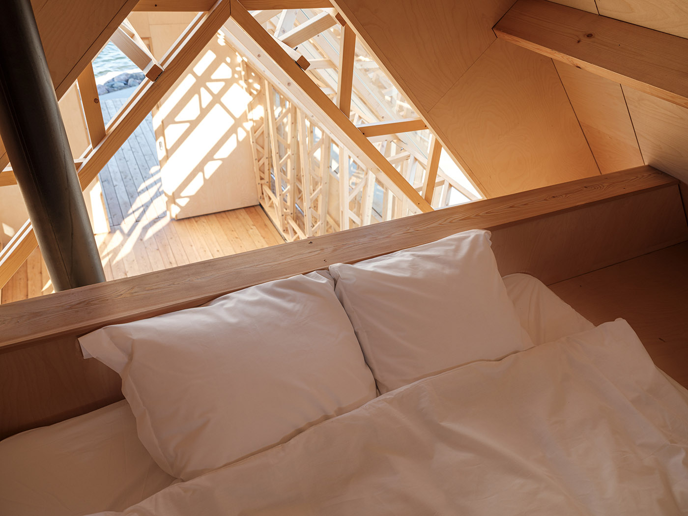 ANNA è realizzata in larice coltivato in modo sostenibile e non trattato; all'interno viengono usati pannelli di betulla per la sua alta qualità e il colore chiaro, isolati dall’esterno con cinque centimetri di segatura. Lo spazio è riscaldato da una stufa a legna, ma c'è la possibilità di installare riscaldamento elettrico. Le finestrature sulla parte di tamponamento della cabina sono studiate in modo che entri la luce naturale ma non scaldi troppo l’ambiente, e per permettere se lo si desidera di essere al riparo dall’esterno: quando i gusci di legno sono chiusi c'è una calda, accogliente, atmosfera protetta dagli elementi, per quando il tempo è ostile o semplicemente si ha voglia di nascondersi un po’ dal mondo. Una condizione che contrasta fortemente con l’apertura e la libertà che si sperimenta quando il solo guscio di vetro è chiuso o tutto è aperto