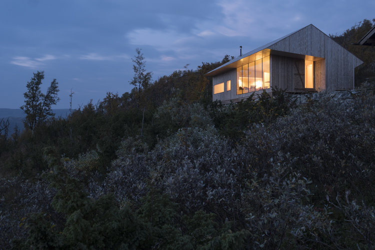 Una casa per tutto l'anno. In assenza di collegamenti stradali, i materiali edili per la costruzione sono stati trasportati sul posto con l'elicottero. Le operazioni di scavo sono state fatte manualmente per preservare la vegetazione a crescita lenta che si trova a queste altitudini in Norvegia. La fondazione è costituita da pilastri sulla roccia. L'esterno dell'edificio doveva essere finito durante i brevi mesi estivi. Il resto è stato completato pieno inverno, quando i materiali per gli interni potevano essere trasportati con lo scooter delle nevi