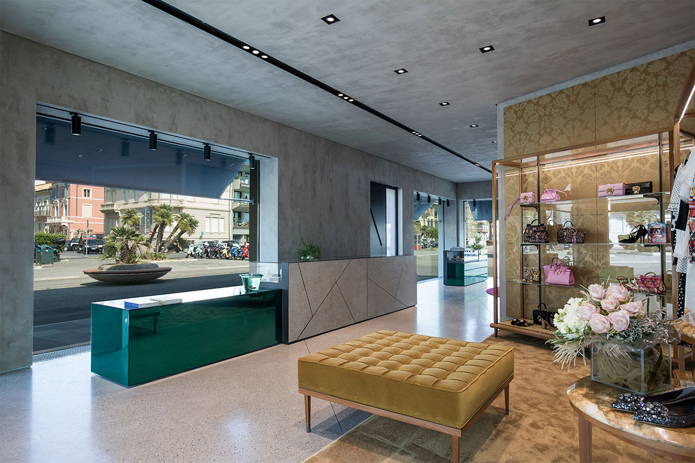 Il nuovo store viareggino trova spazio nei locali di una palazzina storica,l’ex Sorelle Del Mare,sul lungomare della città. Le linee guida dell’edificio originario sono state mantenute e gli spazi distribuiti in successione su tre piani, contestualizzati attraverso sistemi espositivi differenti, con un unico fil-rouge: la celebrazione del prodotto