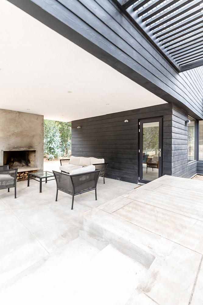 Nella parte centrale è situato un patio di accesso, tra i due volumi principali. Vengono sfruttati al massimo la luce del sole e il panorama. Nello spazio tra i due volumi è proiettata anche la piscina e un'area di prato limitata