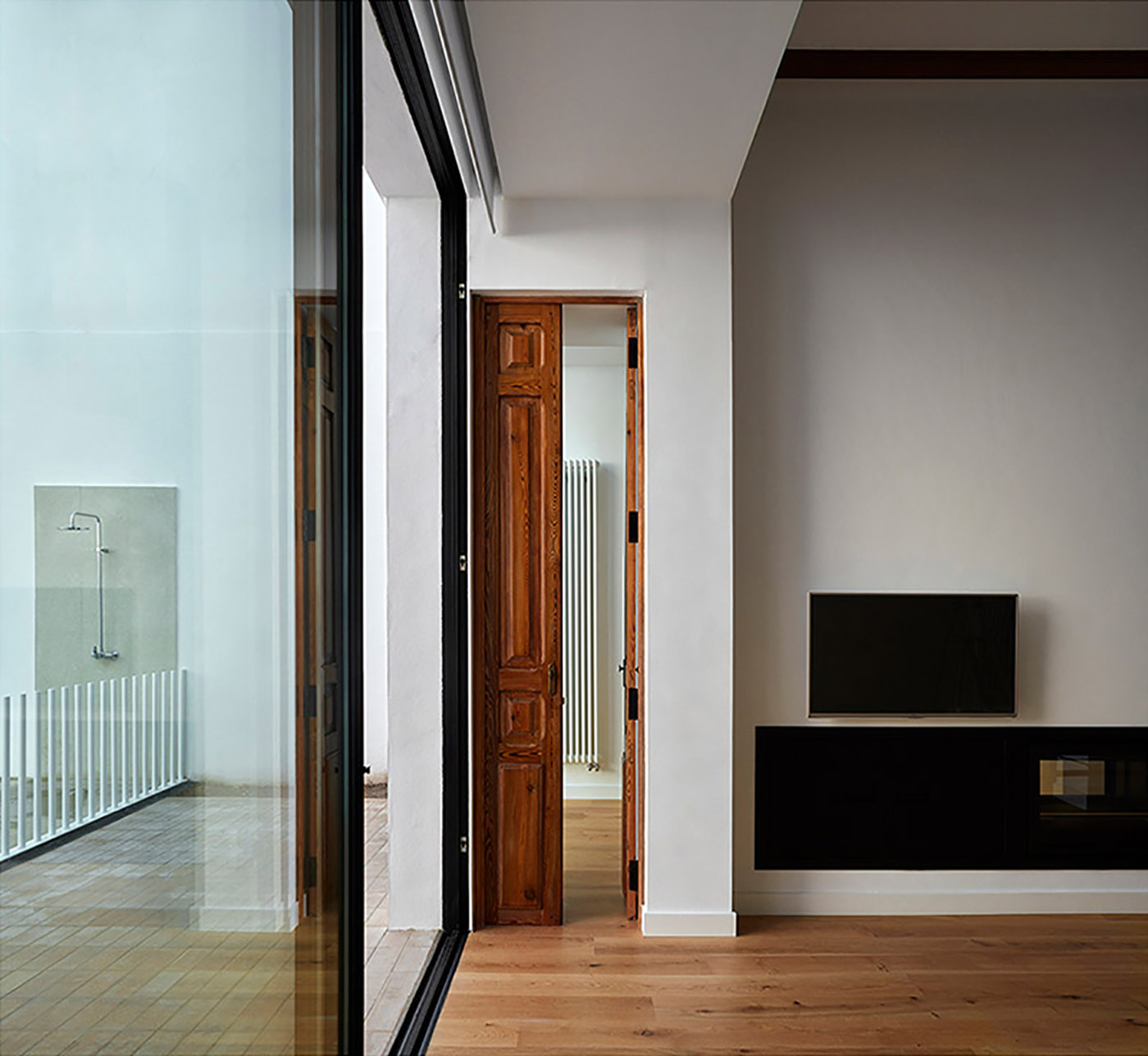 Per perseguire l’intento lo studio DG Arquitecto Valencia, sostenuto dall’evidenza formale antica dell’abitazione (le travi in legno, la facciata e gli infissi originai) imposta il progetto partendo dal caratteristico cortile, verso cui rivolge i principali spazi abitativi per evidenziarne l’importanza, e che divide in tre aree funzionali che si espandono poi anche negli interni