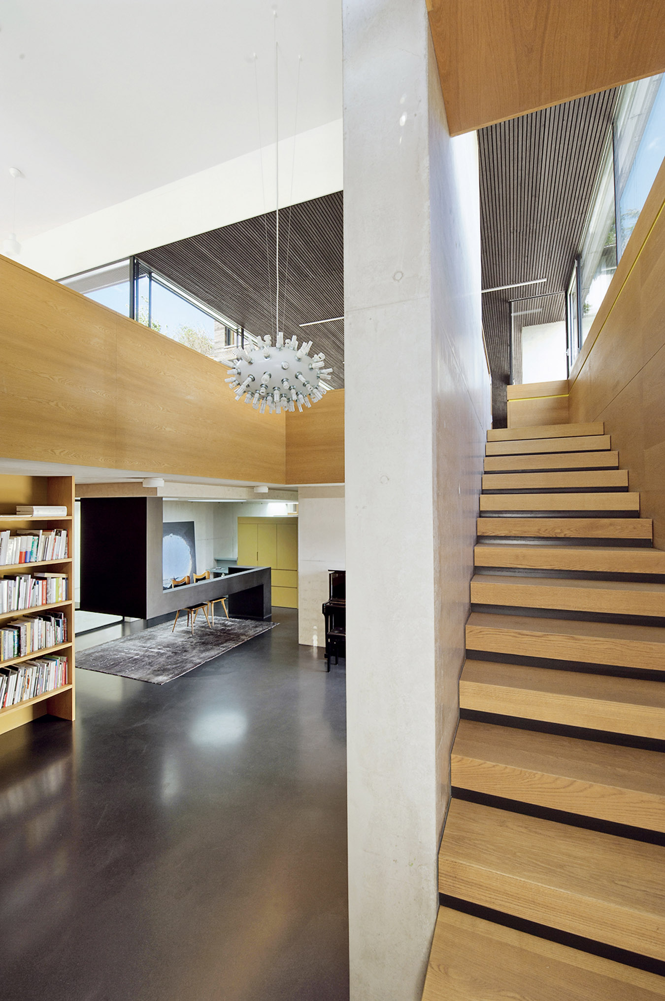 Una villa dal Design originale, secondo il progetto dello Studio viennese Pauhof (Michael Hofstätter/Wolfgang Pauzenberger), che riunisce le funzioni di abitazione, raccolta d'arte e biblioteca, in cui il legno é l'elemento principale a partire dal rivestimento in facciata