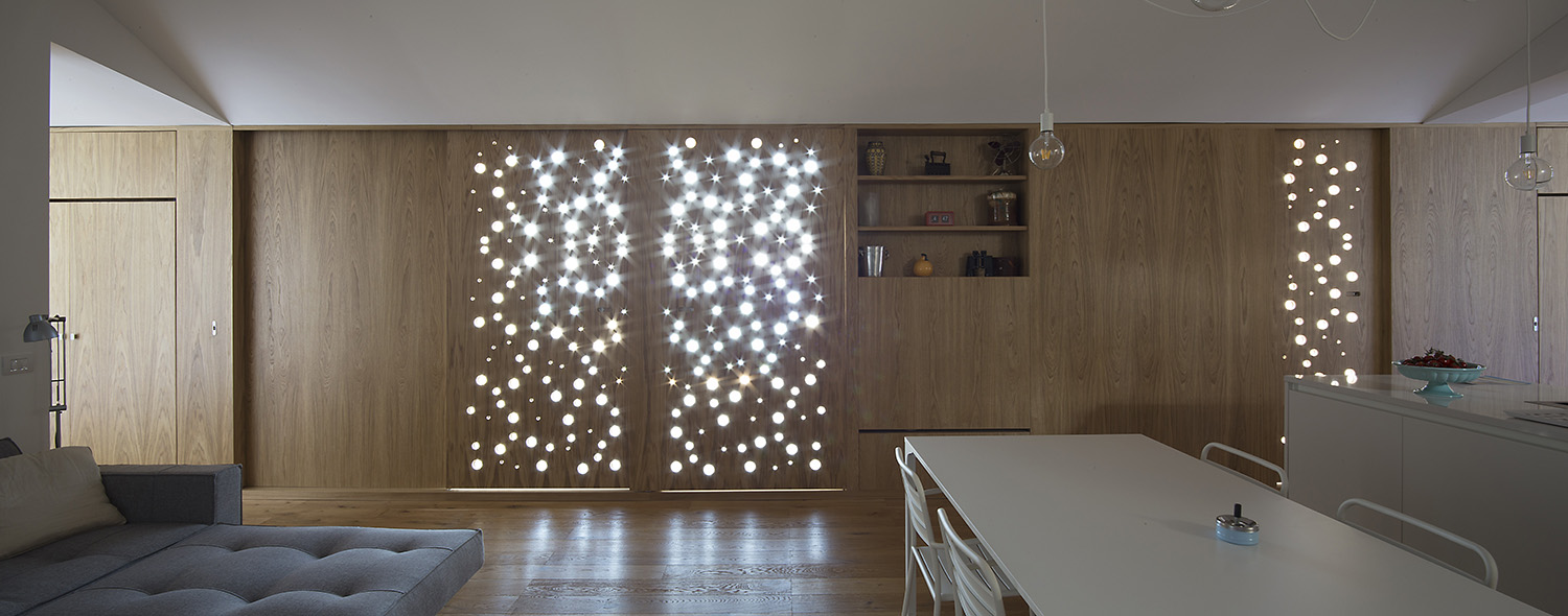 Lo studio tuttiarchitetti realizza, ad Acireale, in Sicilia, un intervento all'interno di una residenza dove il confine tra interno ed esterno è realizzato da un elemento architettonico ligneo