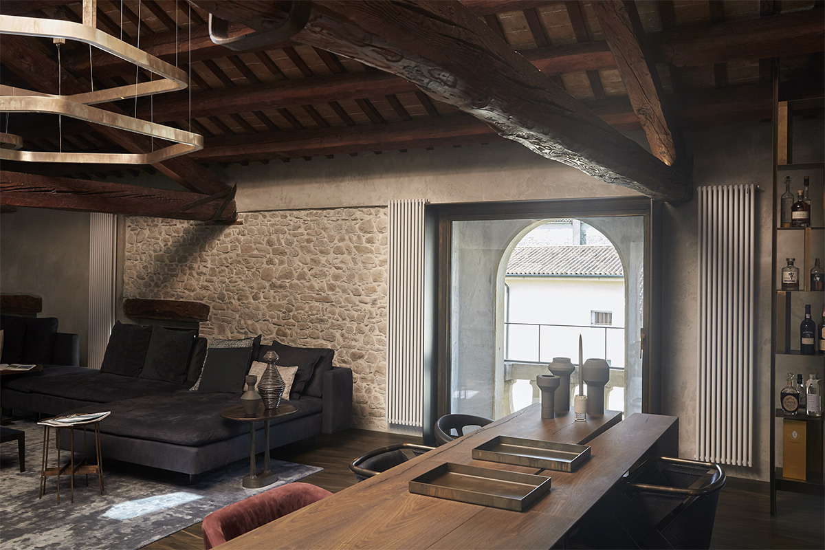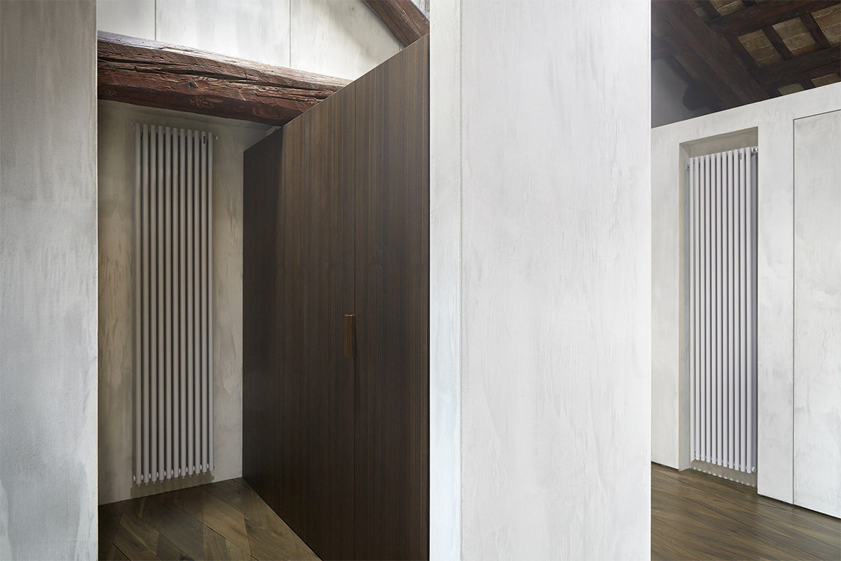 L’Architetto Castagna ha selezionato Tubes in quanto ha saputo trovare una soluzione su misura per le esigenze del committente. L’idea era di avere un calorifero tubolare doppio senza le valvole a vista. Un calorifero che nella sua semplicità, si potesse sposare con l’ambientazione ricercata e ricca di particolari. I caloriferi Tubes spiccano con personalità tra capriate lignee e travi grezze, pannelli di ottone brunito, diamanti a doghe del pavimento in legno tagliato al laser e originali finestre ad arco palladiano.