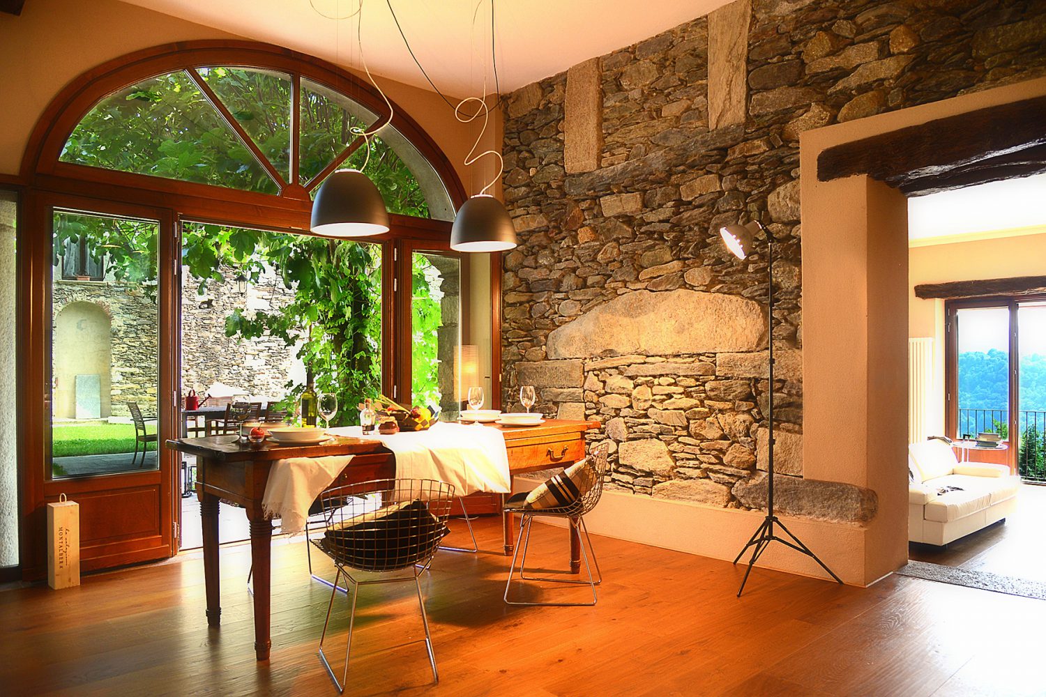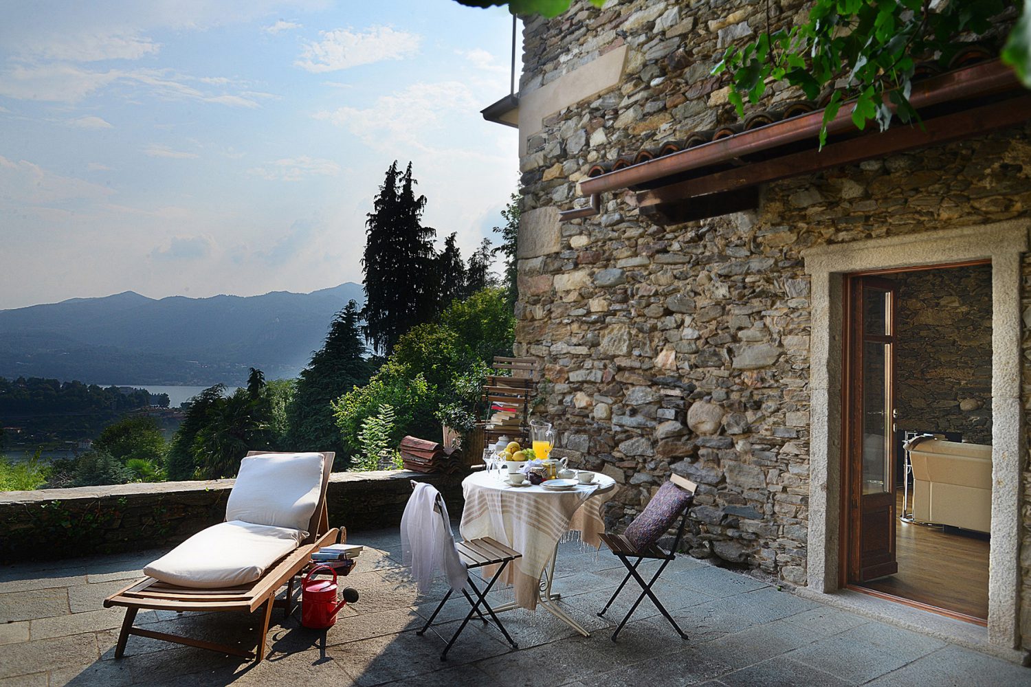 Qui si apre un bellissimo panorama sul Lago d'Orta e interno ed esterno dialogano continuamente grazie alle ampie vetrate, che illuminano l'ambiente e permettono una fruizione continua dello spazio esterno circostante