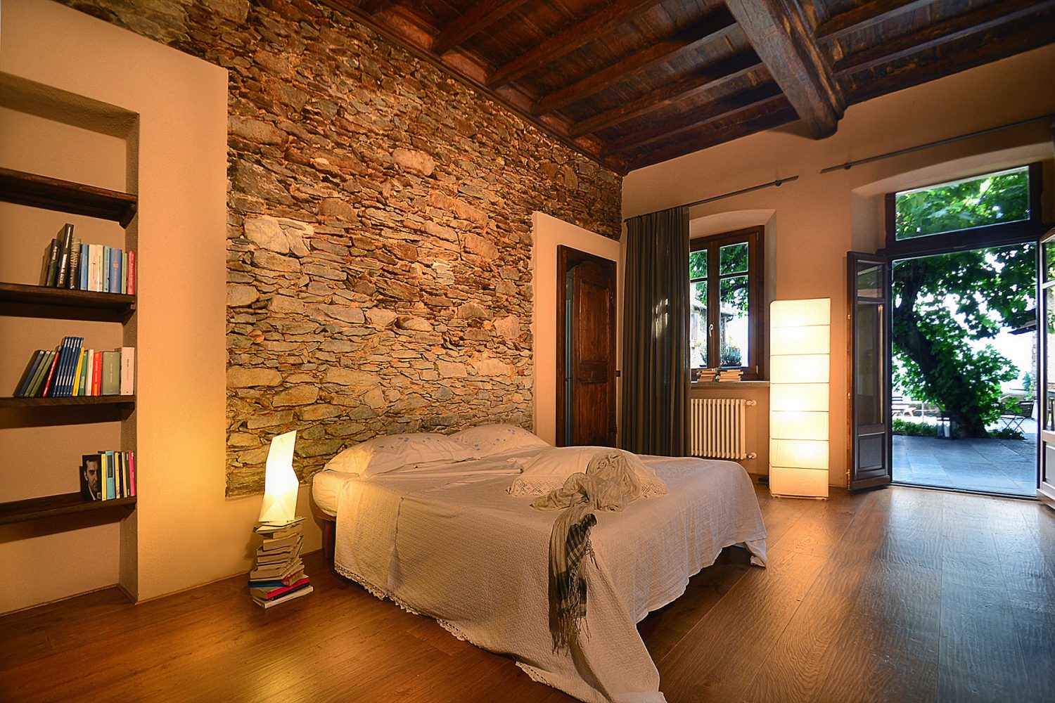 Tutti i locali si affacciano sulla corte e sull'albero di fico. La Corte è stata in parte pavimentata in beola a forma rettangolare e sotto il vecchio fico è stato collocato un tavolo di sasso poggiato su una struttura in ferro